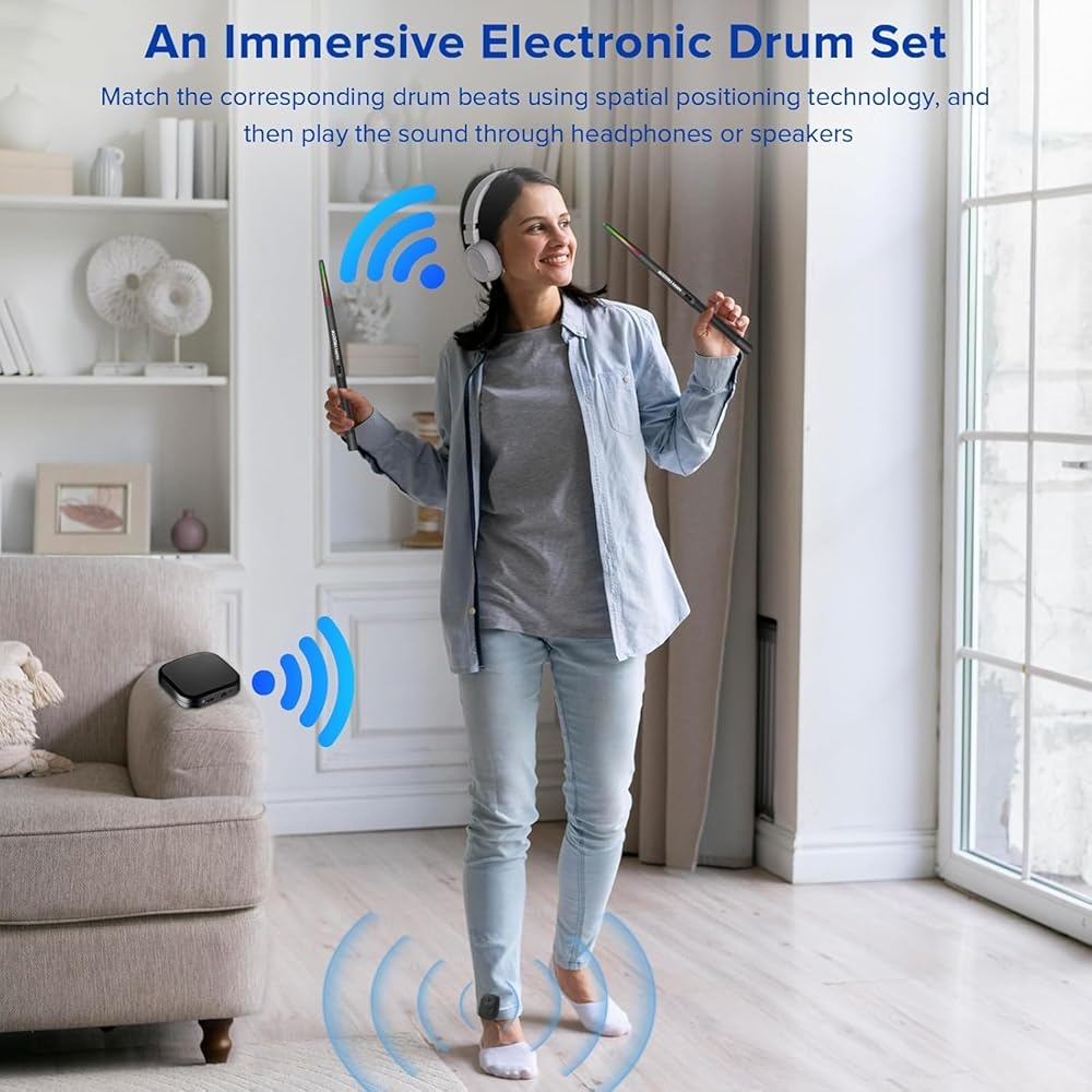 1. Advanced 3D Motion Sensing (Virtual Drum Kit Feel) High-precision motion sensing tracks natural wrist movement to simulate a realistic drumming experience—practice rhythm and timing without physical drums.