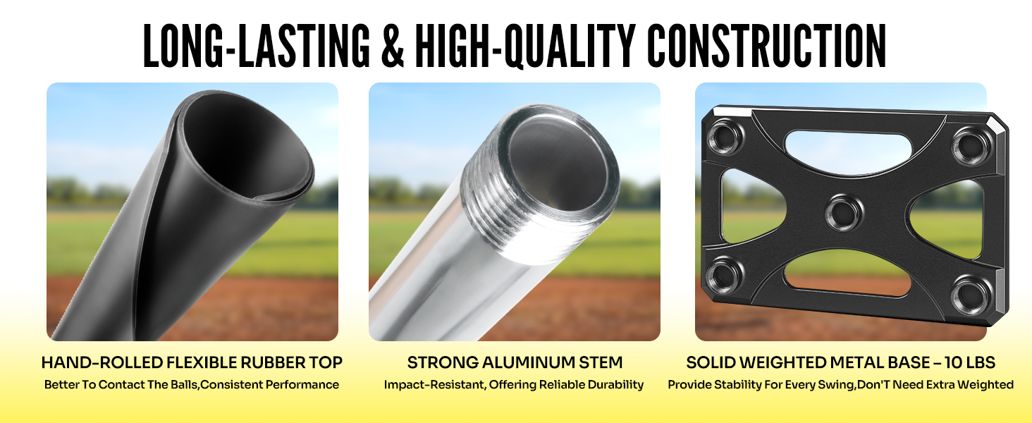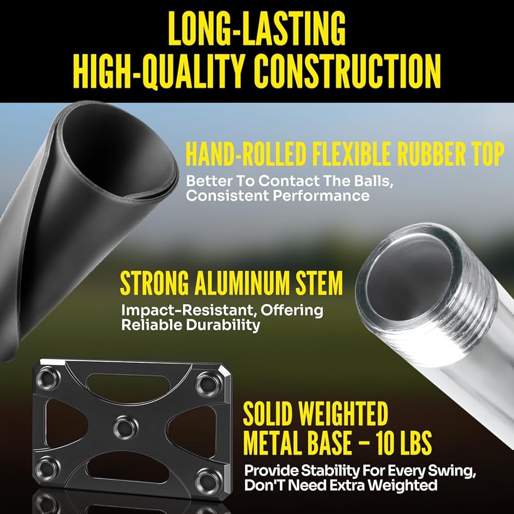 ⚾【هيكل قوي لجميع المواسم】تي شيرت البيسبول هذا مصنوع من جزء علوي مطاطي ملفوف يدويًا وساق من الألومنيوم وقاعدة معدنية بوزن 10 رطل، ويوفر التصميم القوي الثبات لتدريبك ويجعلك على اتصال أفضل بالكرات. ستستمر تيشيرت الضرب موسمًا بعد موسم في لعبة كرة البيسبول والبيسبول والكرة اللينة.