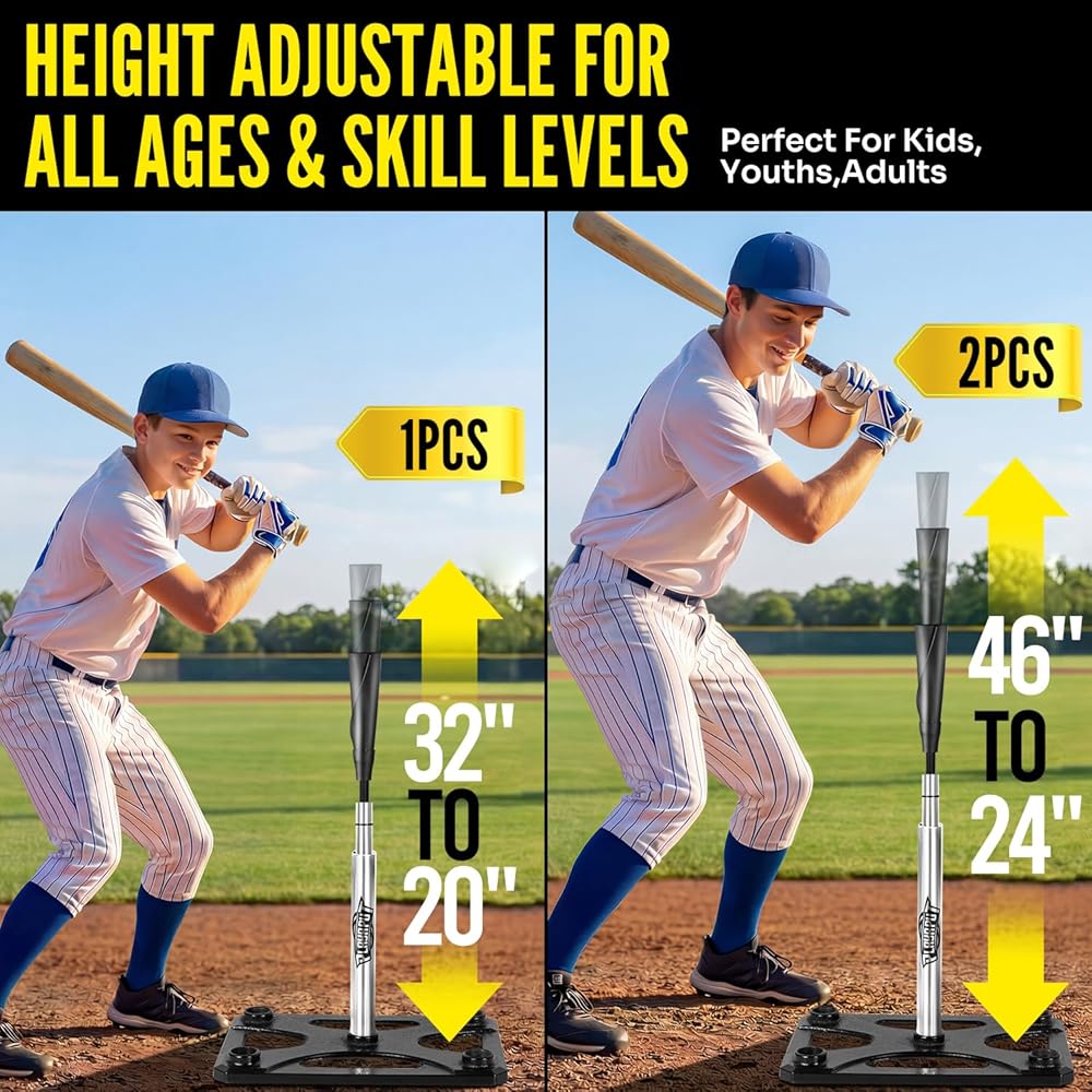 ⚾【ارتفاع 20-46 بوصة قابل للتعديل - نظام 3 أنابيب】تم تصميم تي شيرت الضرب بنظام ارتفاع قابل للتعديل بثلاثة أنابيب، بما في ذلك أنبوبين مقاس 24 بوصة - 46 بوصة وأنبوب واحد مقاس 20 بوصة - 32 بوصة، مما يسمح بسهولة التعديل لتغطية جميع ارتفاعات التدريب للأطفال والشباب والبالغين. يمكن لكل ضارب أن يتكيف مع الارتفاع المثالي للتدريب على الضرب والتأرجح والضرب.