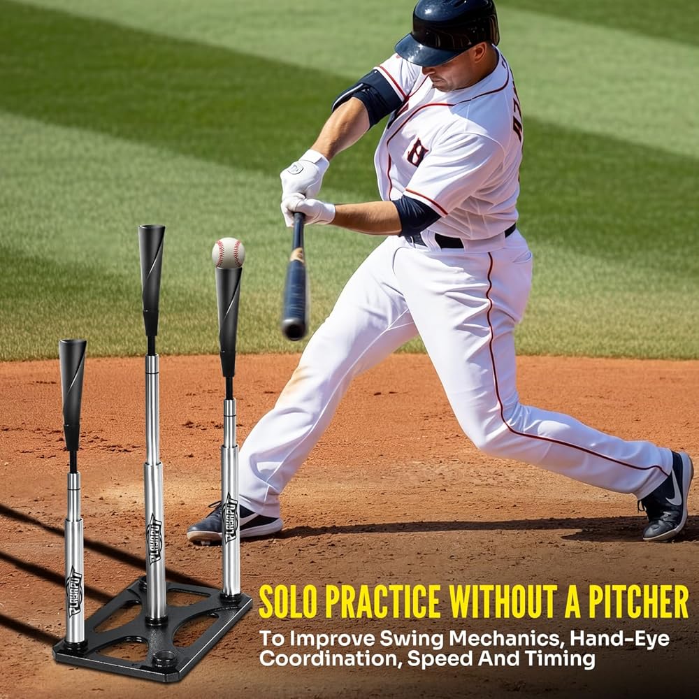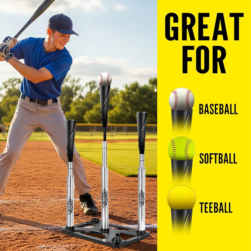 ⚾【لجميع لاعبي البيسبول/الكرة اللينة】تتميز بـ 3 سيقان من الألومنيوم يمكن وضعها في أي وضع تريد التدرب عليه وتحسين جميع أنواع مهارات الضرب. يمكن استخدام تي شيرت الضرب المحمول للتمرين الاحترافي اليومي والمتقدم، بدءًا من الدوري الصغير وحتى اللاعبين المحترفين.