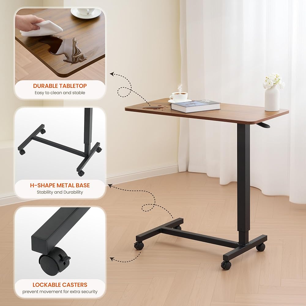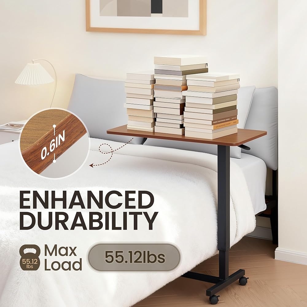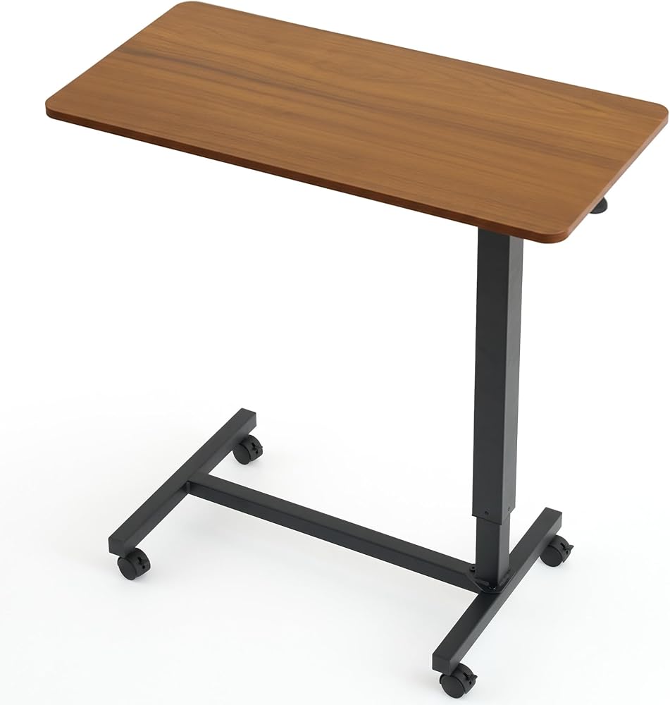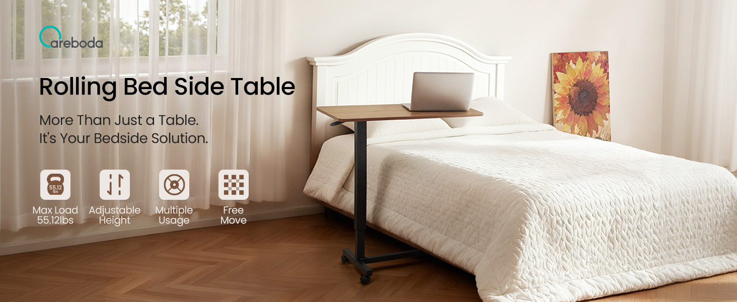 طاولة سرير جانبية من Careboda ذات ارتفاع هوائي قابل للتعديل مع عجلات - طاولة جانبية لسرير دوار للمنزل والمكتب والمستشفى - بني