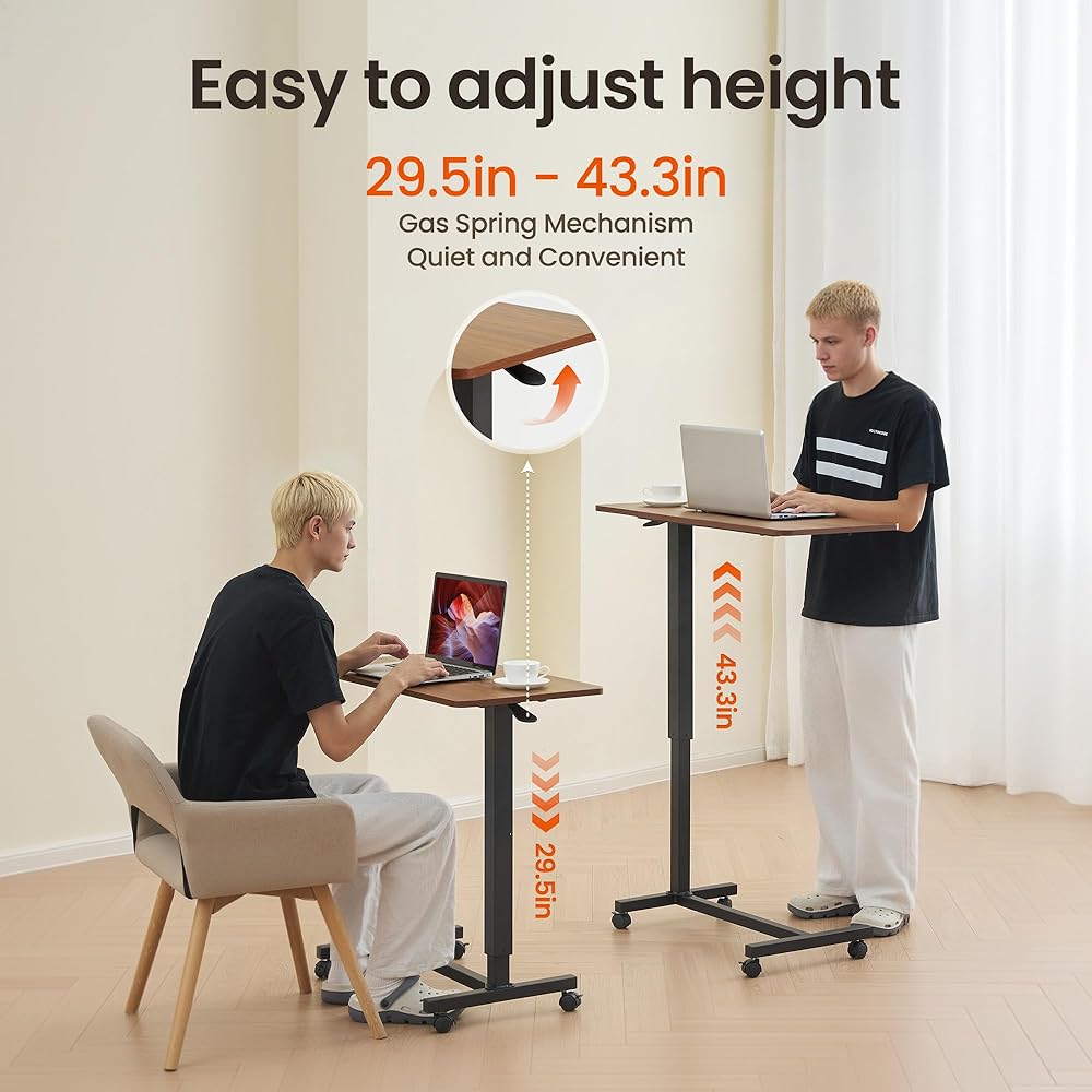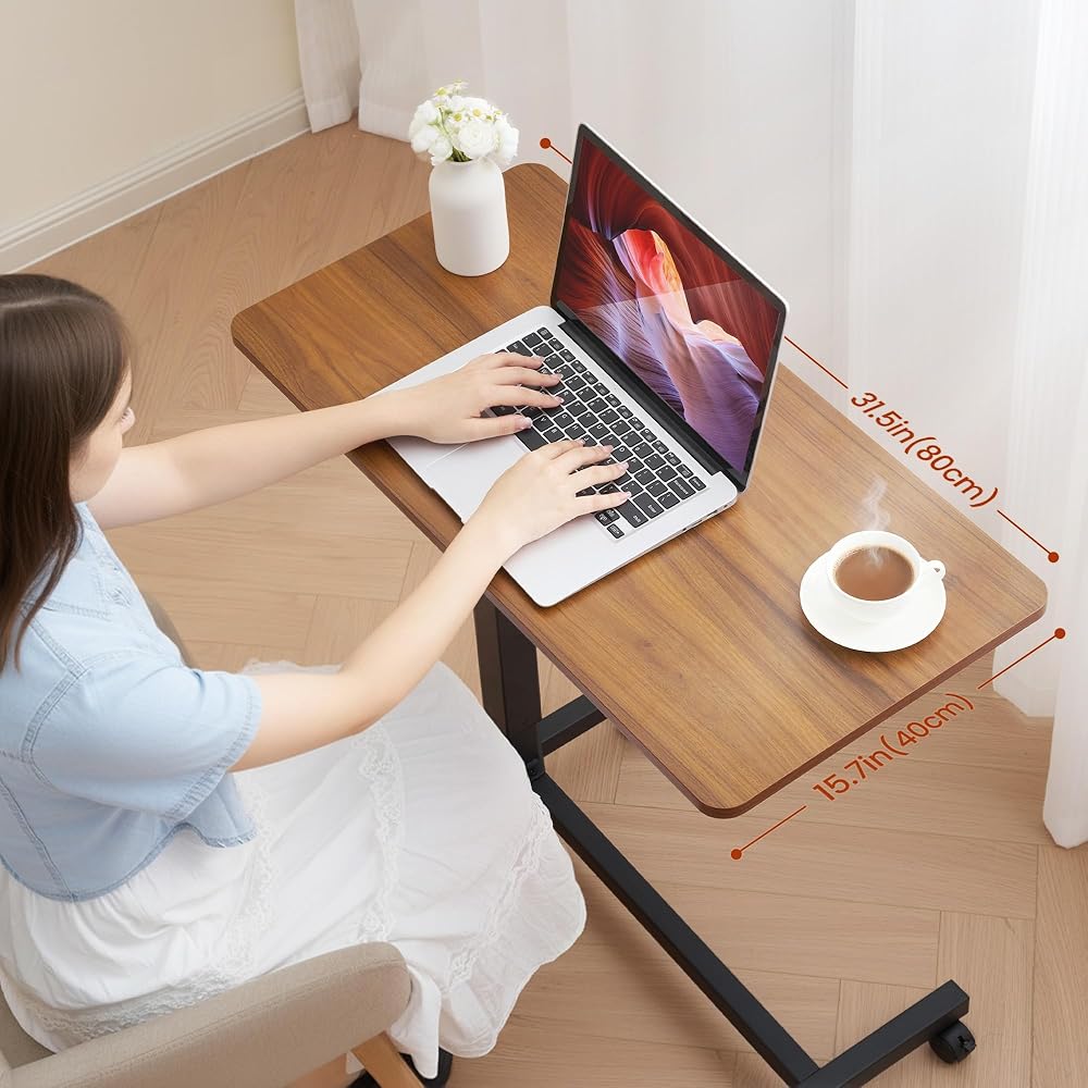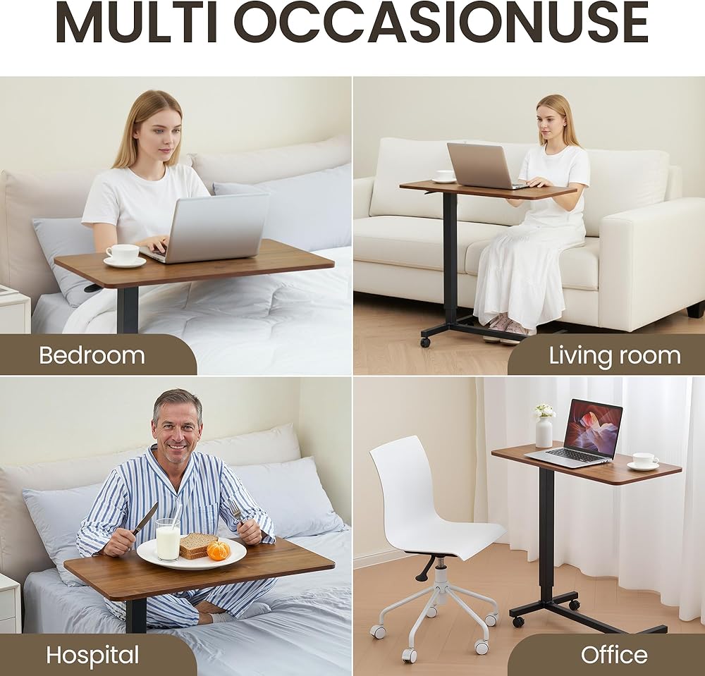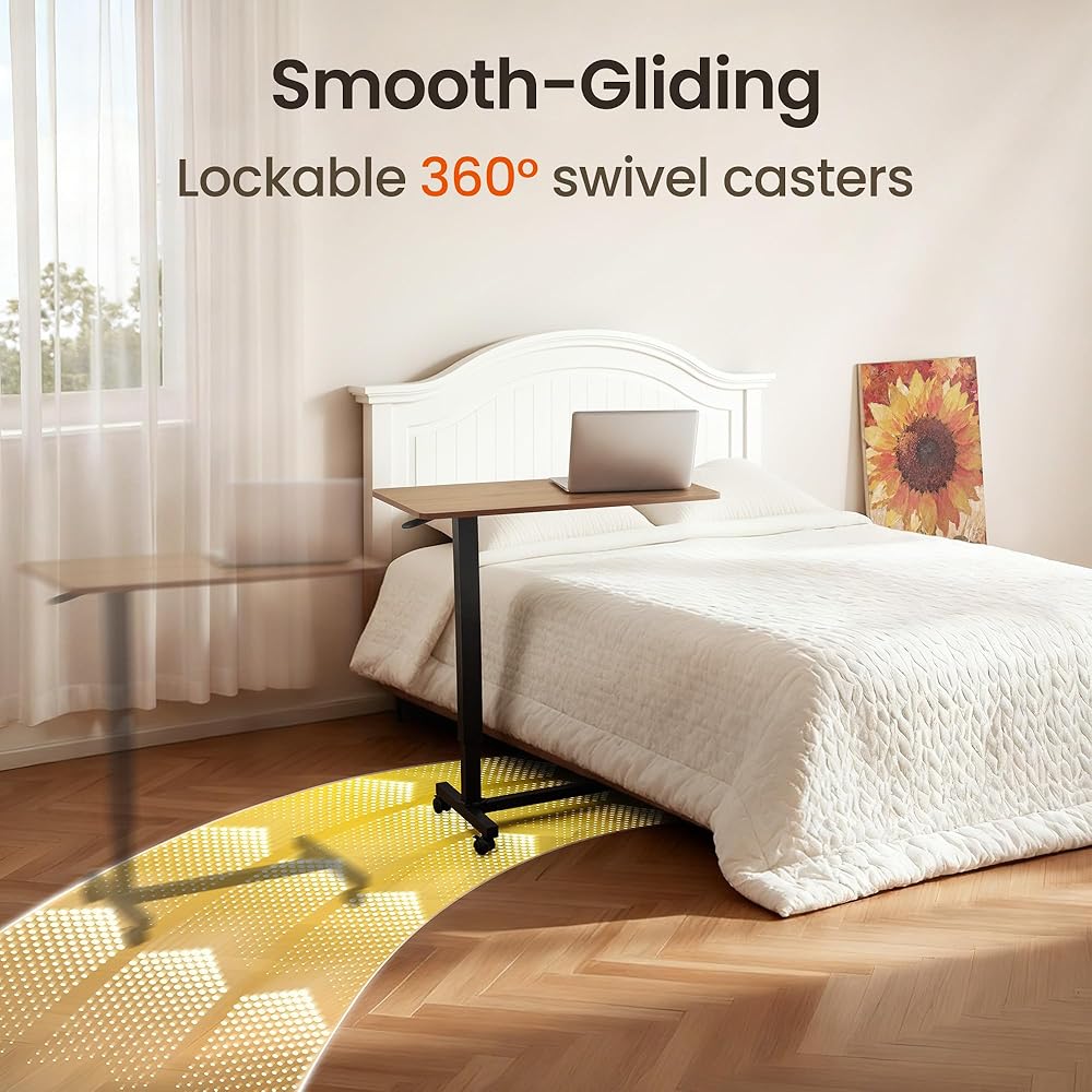 طاولة سرير جانبية من Careboda ذات ارتفاع هوائي قابل للتعديل مع عجلات - طاولة جانبية لسرير دوار للمنزل والمكتب والمستشفى - بني