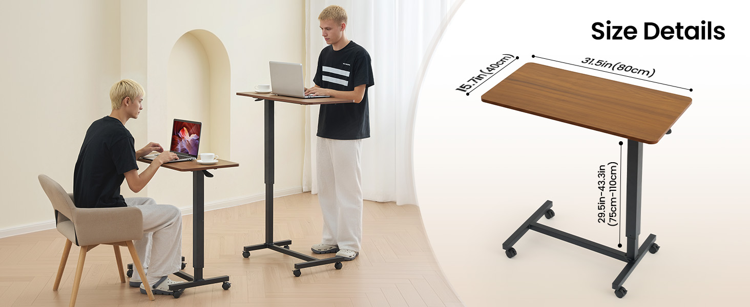 • ارتفاع قابل للتعديل: تتميز هذه الطاولة بتعديل ارتفاع زنبرك الغاز (نطاق 75-110 سم)، وتتكيف هذه الطاولة ذات العجلات بسهولة مع ارتفاعات السرير المختلفة وتفضيلات المستخدم. مثالي لكل من وضعيات الجلوس والوقوف، فهو يضمن الراحة المثالية للعلاج أو العمل أو تناول الطعام.