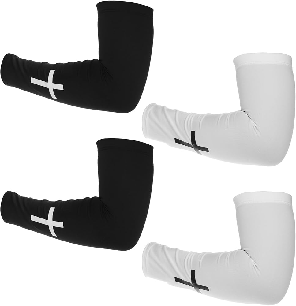 Hadnves 2 Pairs Faith Cross Arm Sleeves Polyester Religious Compression Christian Cooling Arm Sleeves Outdoor Sports Accessories for Men Women Football Baseball Volleyball Running Cycling Black White
