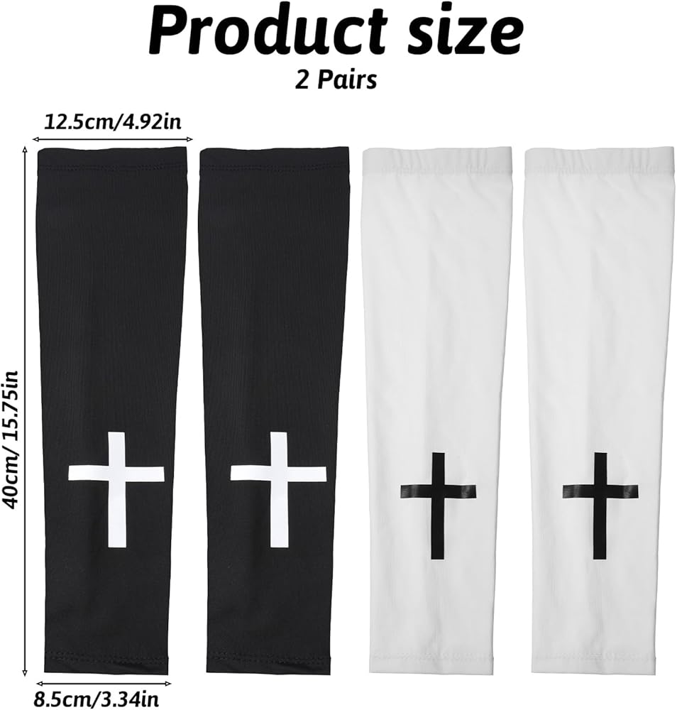 2 أزواج الإيمان الصليب الأكمام الذراع المسيحية الدينية ضغط الذراع الأكمام البوليستر التبريد الرياضة في الهواء الطلق الملحقات للرجال النساء كرة القدم البيسبول الكرة الطائرة الجري ركوب الدراجات أسود أبيض