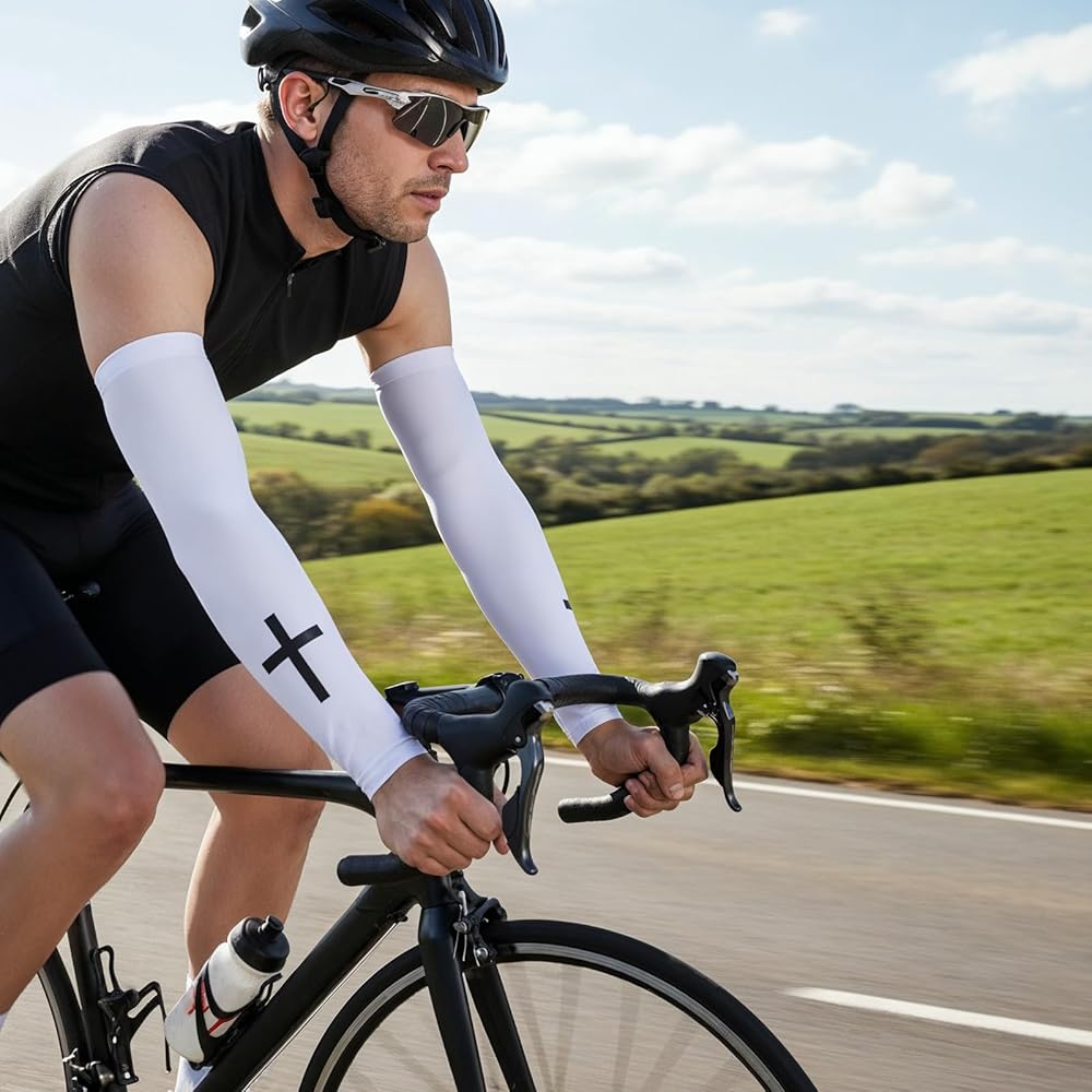 【Stylish and Beautiful】Compression arm sleeves for men features a printed cross design, symbolizing faith and belief. Gaming arm sleeve is not only practical but also stylish and beautiful. Arm sleeves football helps improve your mental state, stabilize your emotions, perform at your best, and become the center of attention