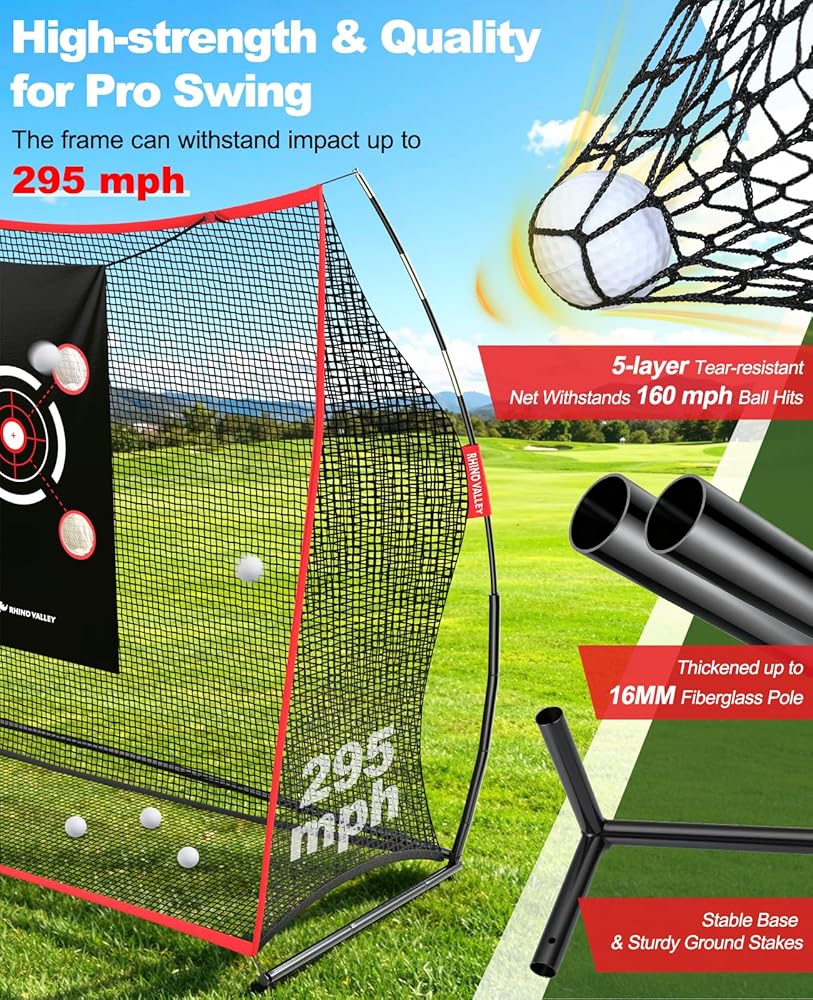 • قماش شديد التحمل وشديد التأثير - تتميز شبكة الضرب المطورة بنسيج أكثر إحكامًا وأكثر سمكًا يتحمل تأثيرات الكرة حتى 160 ميل في الساعة، ويمنع بشكل فعال التمزق من اصطدامات كرة الجولف؛ مجهزة بـ 4 أوتاد أرضية على شكل حرف U وأنبوب قاعدة بطول 0.082 قدم، مما يضمن تثبيتًا ثابتًا طوال جلسات التدريب الخاصة بك