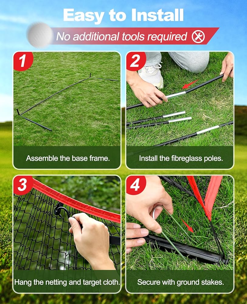 • سهل التركيب - يمكنك تجميعه أو فكه في دقائق بدون أدوات؛ كل ذلك في حقيبة جولف واحدة، يمكنك حملها إلى أي مكان؛ مثل الفناء الخلفي الداخلي والخارجي والجراج والمنزل، فهو يساعدك على تحسين مهاراتك في كل مكان، فلا يمكن للطقس العاصف أو الظلام المتساقط أن يوقف روتين التدريب الخاص بك.