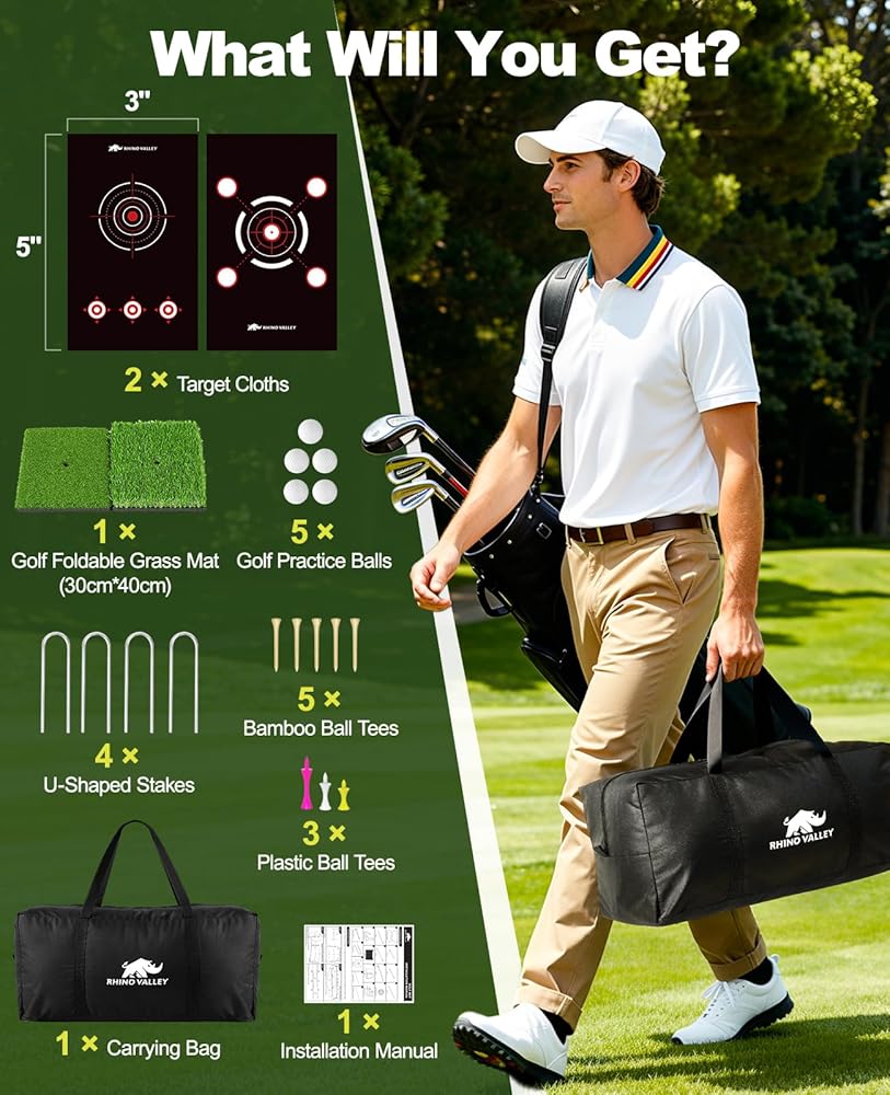 • هدية للجولف - سواء كنت مبتدئًا أو لاعب جولف ذو خبرة، فإن مجموعة شبكة تدريب الجولف هذه هي خيار رائع للهدايا؛ إنها تسمح لك بممارسة الجولف في أي وقت وفي أي مكان، مما يجعلها هدية مدروسة لرجال الجولف في عيد الميلاد وعيد الحب وأعياد الميلاد وغير ذلك الكثير.