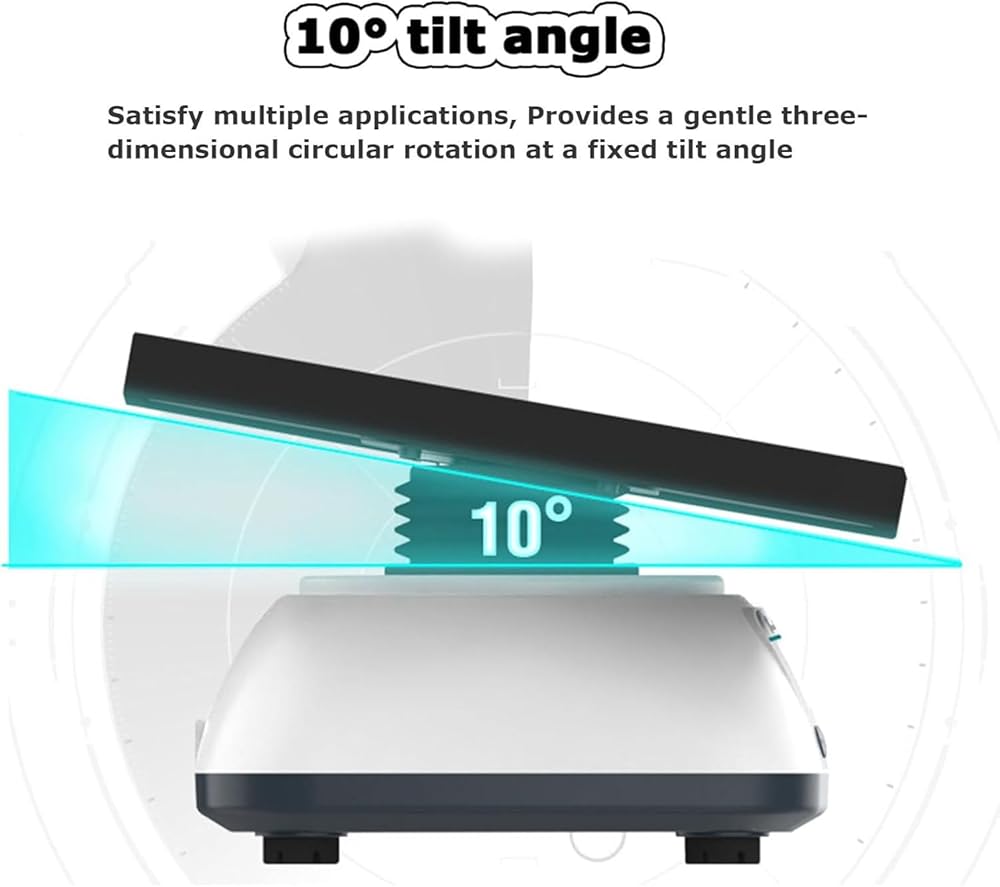 【Digital Orbital Shaker Mixer】: 10° tilt angle, The shaker suitable for a variety of applications, providing a gentle three-dimensional circular rotation mixing at a fixed tilt angle