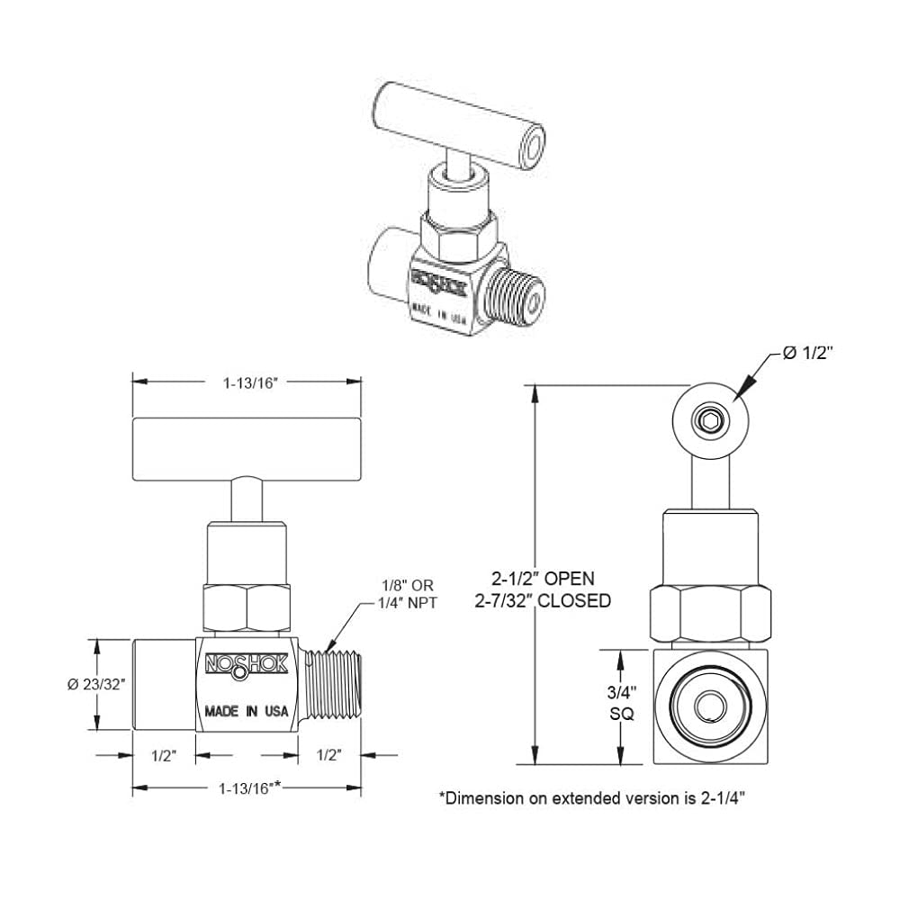 صمام صغير، مقعد صلب، 1/4 NPT ذكر - 1/4 NPT أنثى، فولاذ، فتحة 0.172 بوصة