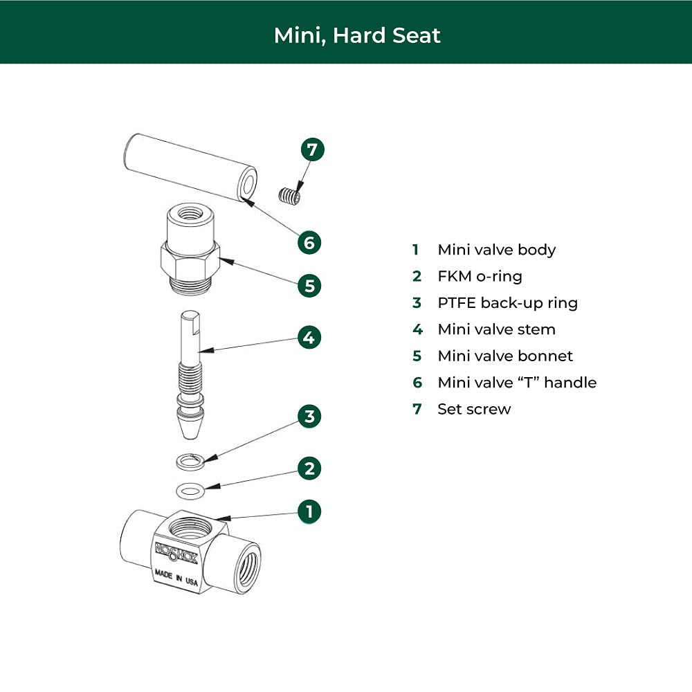 • مقاومة للتآكل | يتميز الختم الجذعي بالفولاذ المقاوم للصدأ 316 لتحسين مقاومة التآكل. يشتمل الخيط على حلقة دائرية من الفلوروكربون (FKM) وطلاء بولي تترافلوروإيثيلين (PTFE) الذي يعزز مقاومة التآكل لهذا الصمام الإبري.
