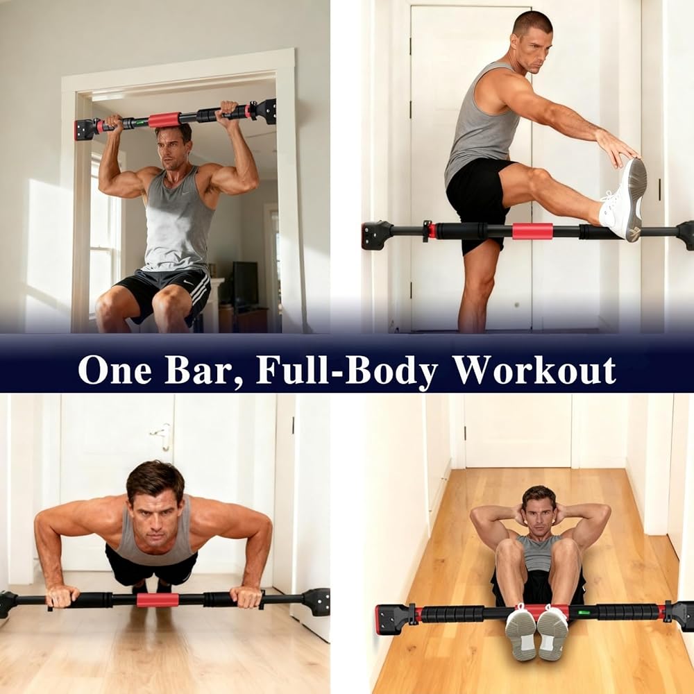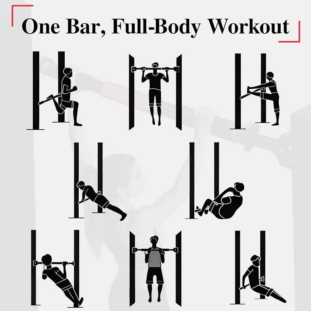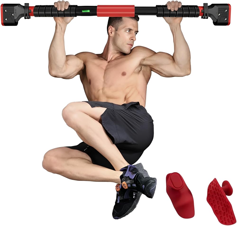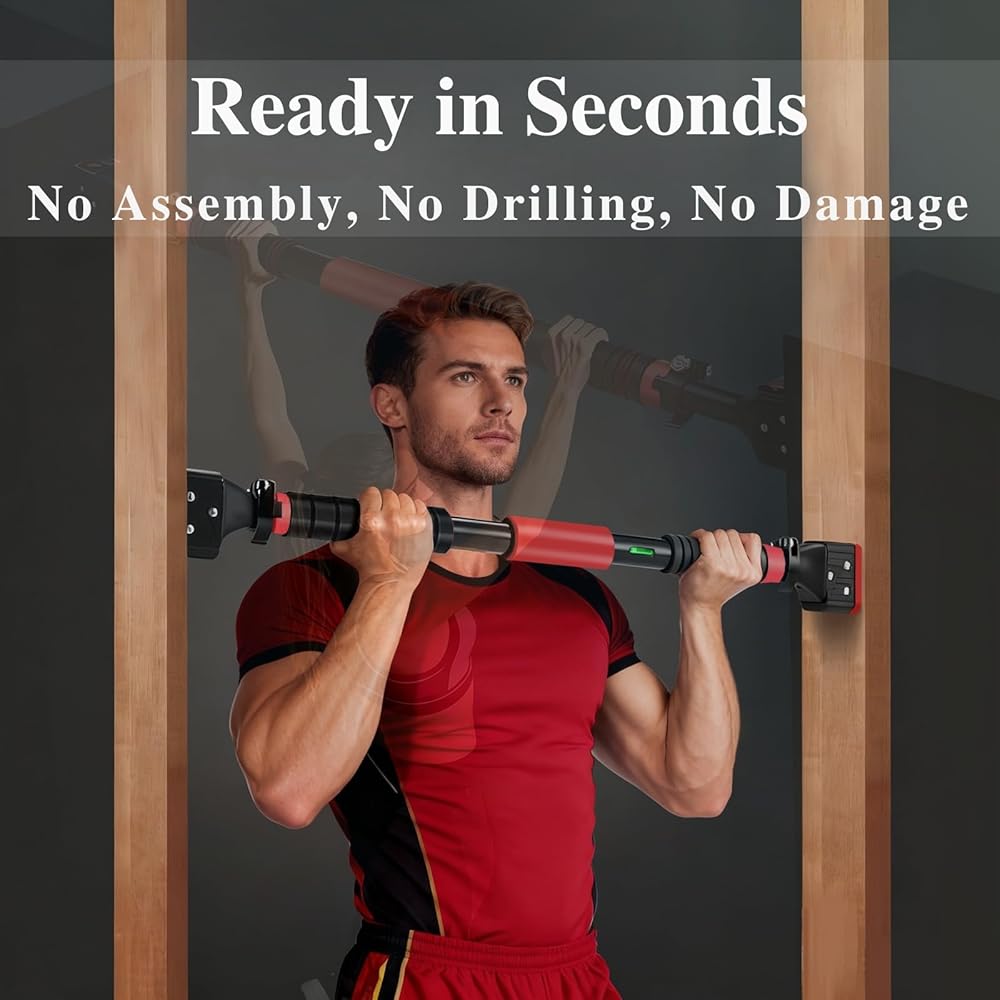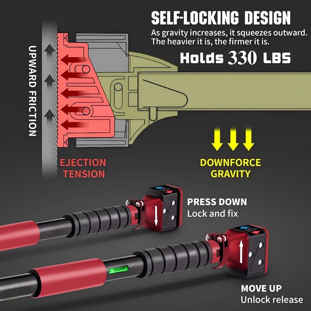 【أمان لا يتزعزع مع نظام القفل المزدوج | ارفع بثقة: سلامتك هي الأهم. يتميز شريط السحب الخاص بنا بآلية قفل مزدوج حاصلة على براءة اختراع مع أقفال تروس ومثبتات مضادة للارتخاء لمنع أي دوران أو انزلاق. تم تصميمه من أنابيب فولاذية معززة، وتم اختباره بدقة لدعم ما يصل إلى 330 رطلاً، مما يسمح لك بالتركيز على شكلك، وليس على السقوط.