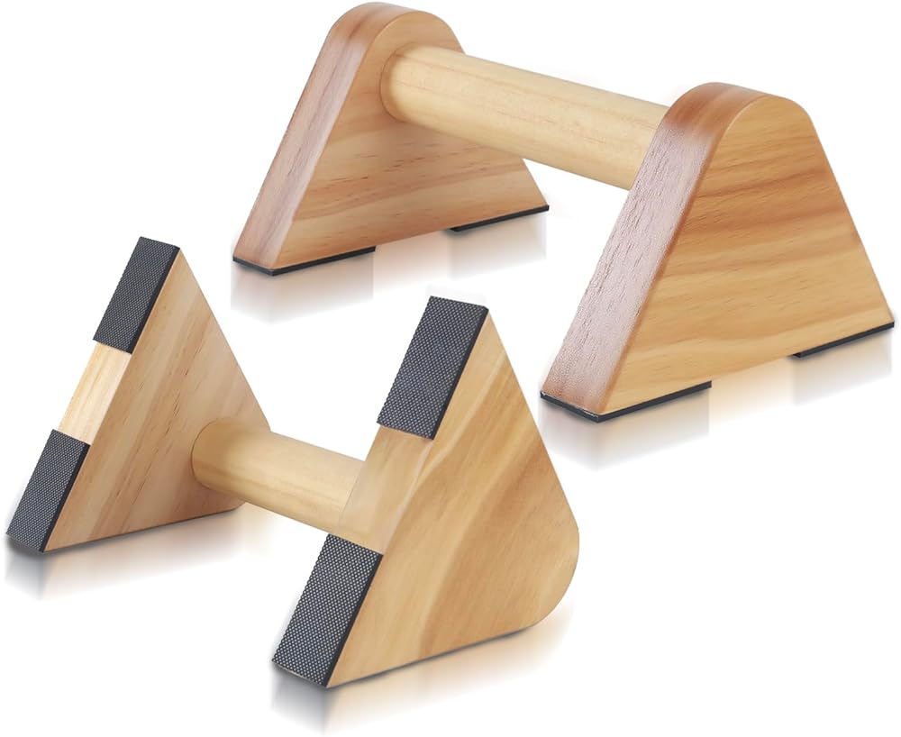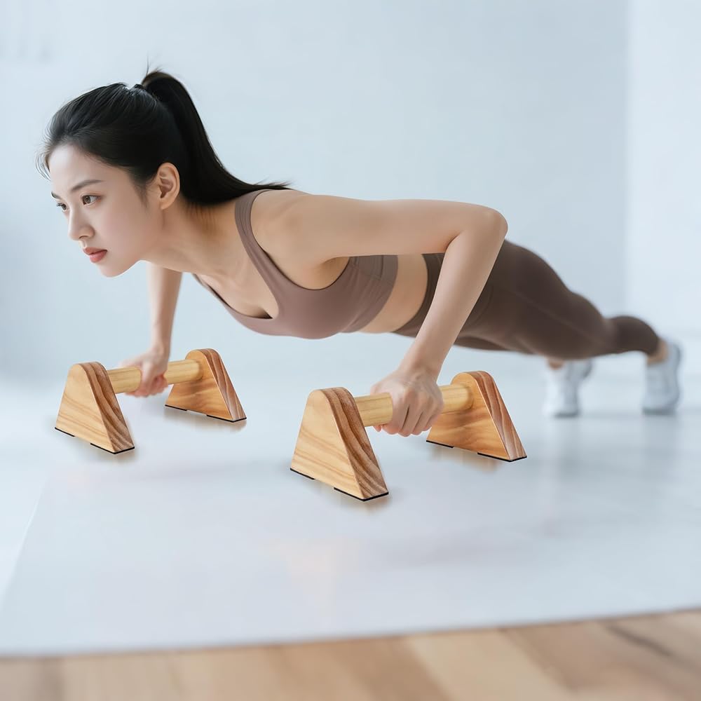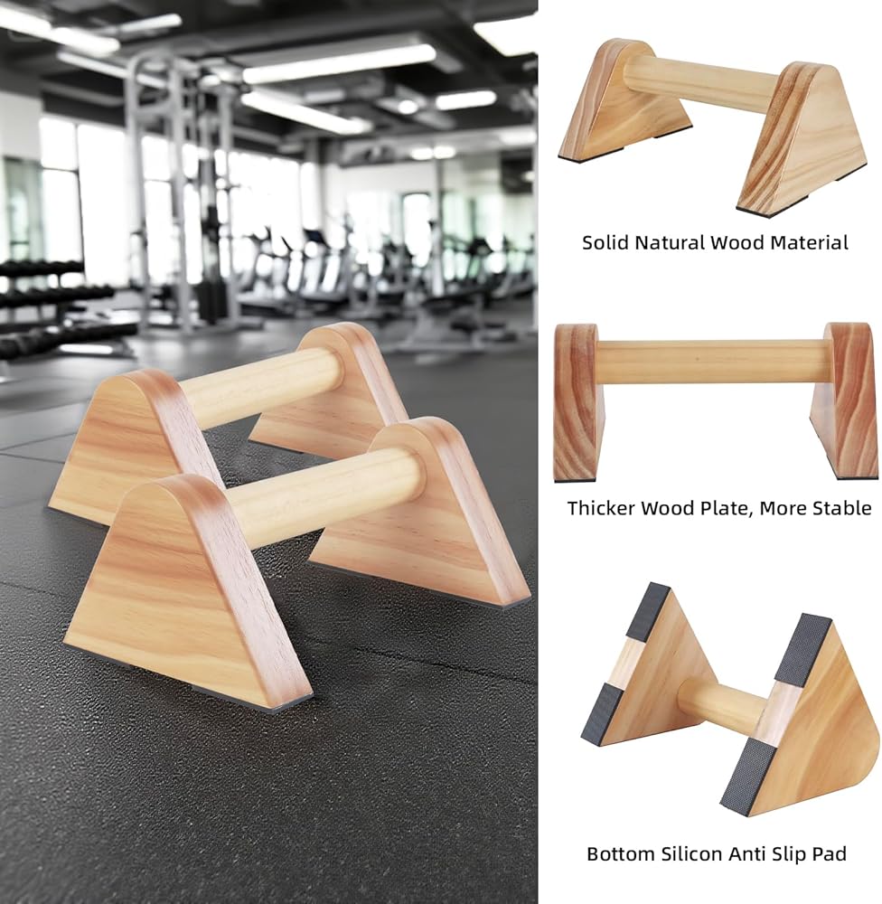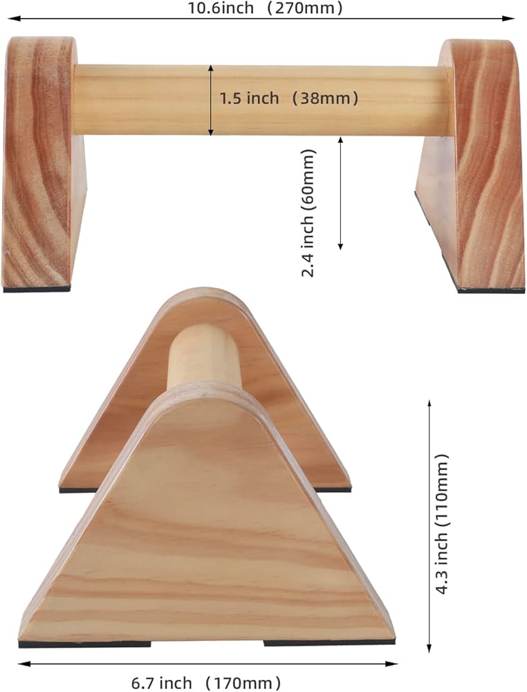 • قضبان باراليت خشبية عالية الجودة لممارسة التمارين الرياضية: بالمقارنة مع المواد البلاستيكية، فإن البناء الخشبي السميك المثلث أكثر متانة وقوة للاستخدام اليومي. وأكثر راحة مع مقابض الخشب الطبيعي.