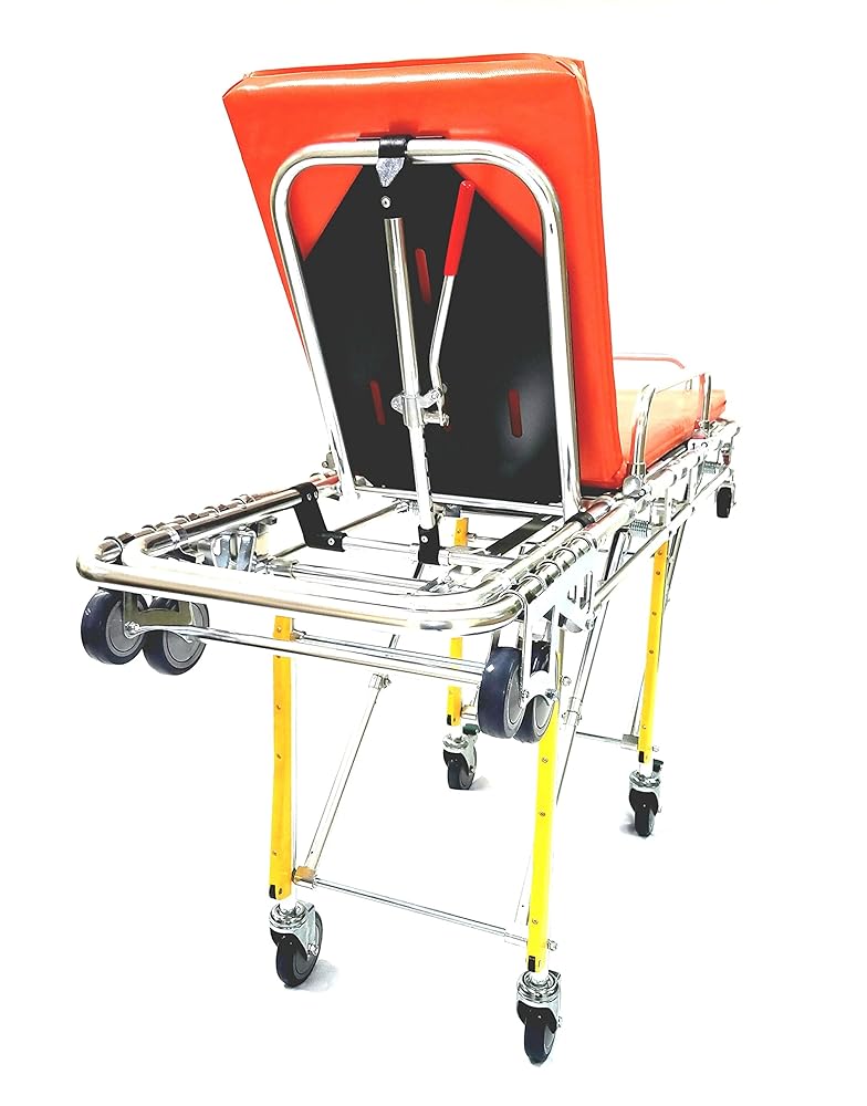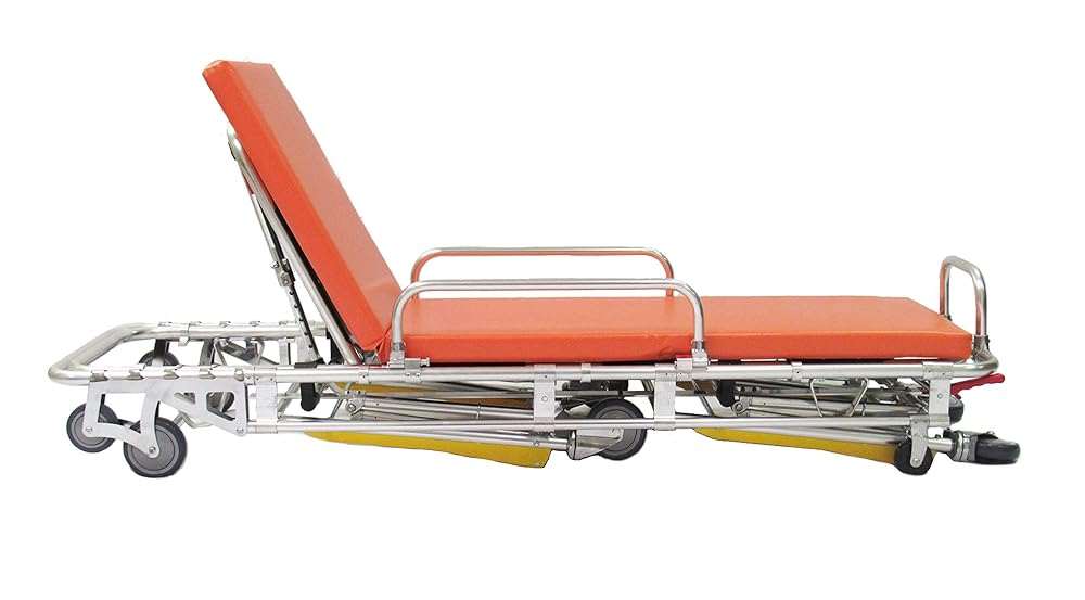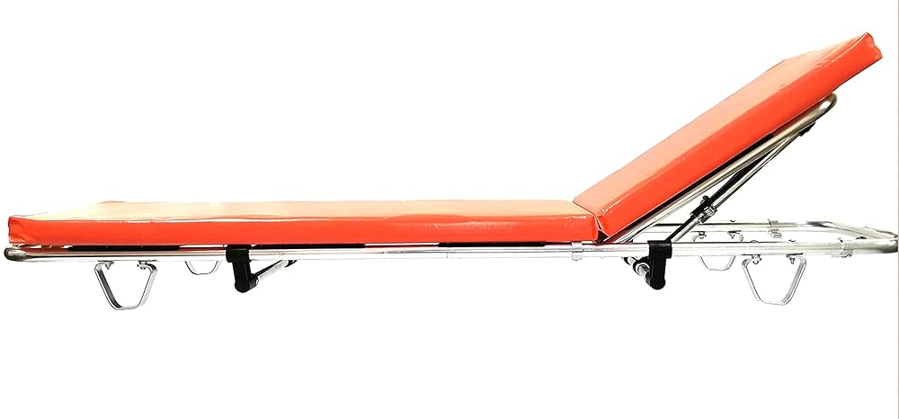 • Constructed of high-strength aluminum alloy, light and durable. 2" think foamed cushion for extra patient comfort. Adjustable backrest allows for multiple adjustments keeping the wounded comfortable. Only one person needed to load the stretcher into the emergency vehicle. Bumper rails attached to the stretcher legs protect the frame while loading. Siderails drop to allow for easy patient loading and unloading