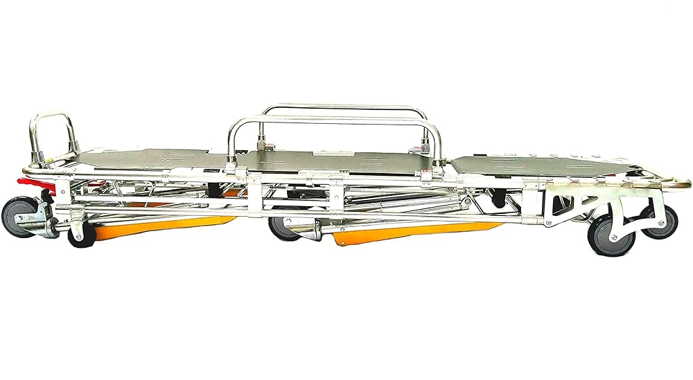 This automatic loading ambulance stretcher is light enough for one person to load. Removable Double Top can be used as a spine board.