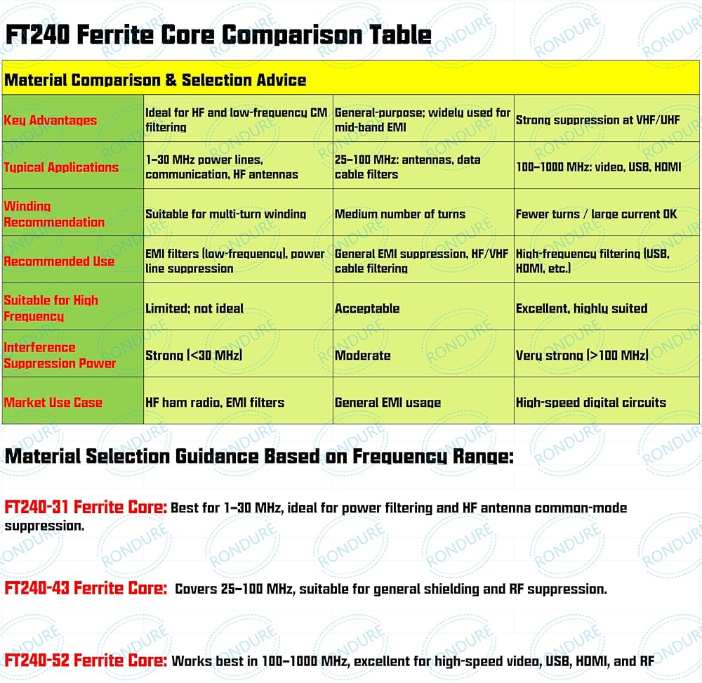 Whether you're building your own common-mode choke, antenna filter, or looking to reduce conducted EMI in your DIY project, this toroidal core delivers consistent results. The large inner diameter (1.4") makes it easy to wrap multiple wire turns or accommodate thick cable, making it perfect for enthusiasts and professionals alike.
