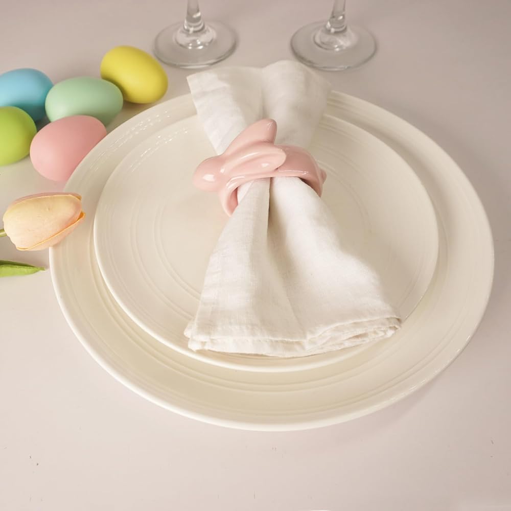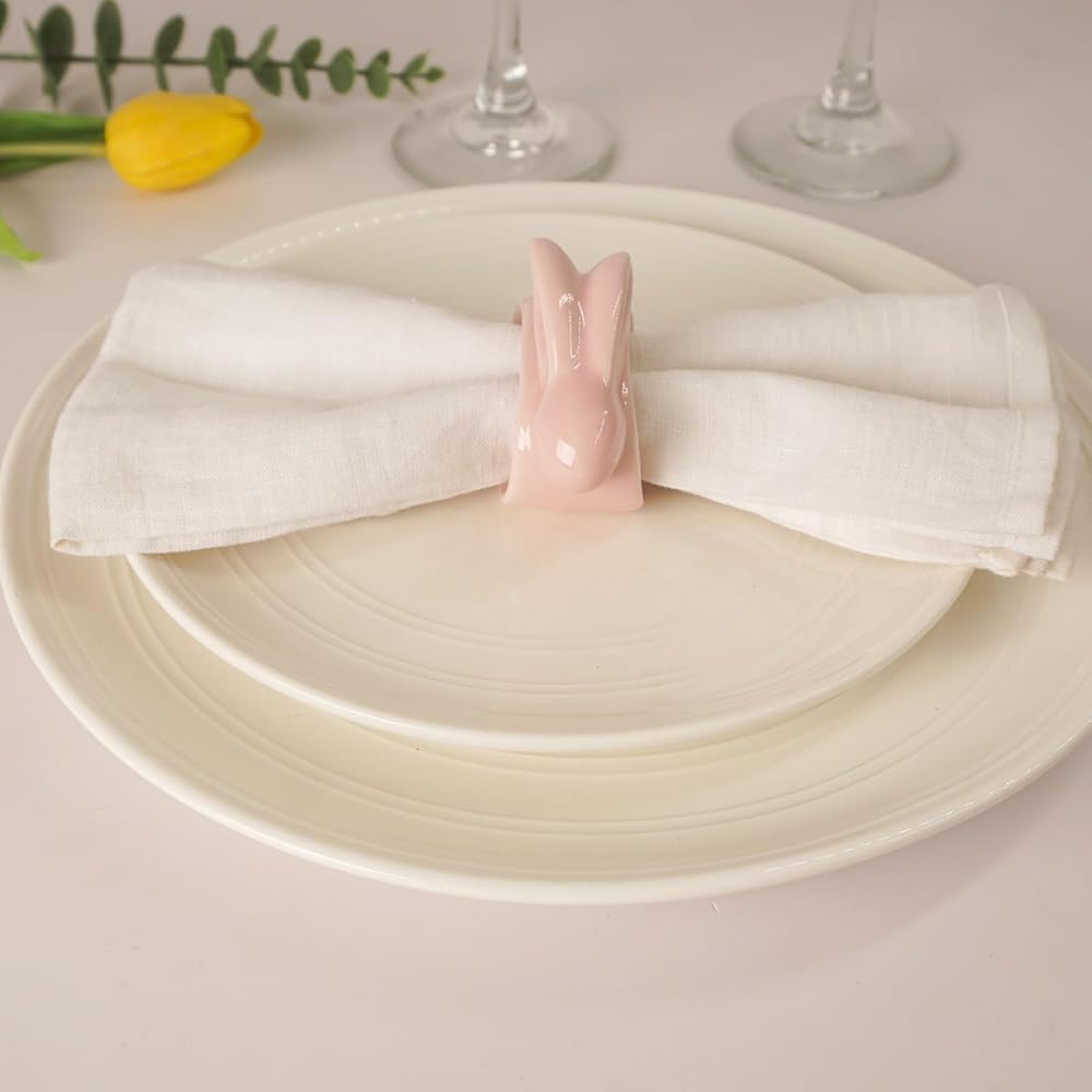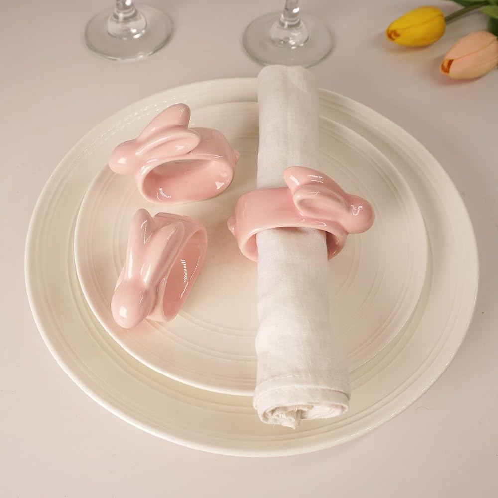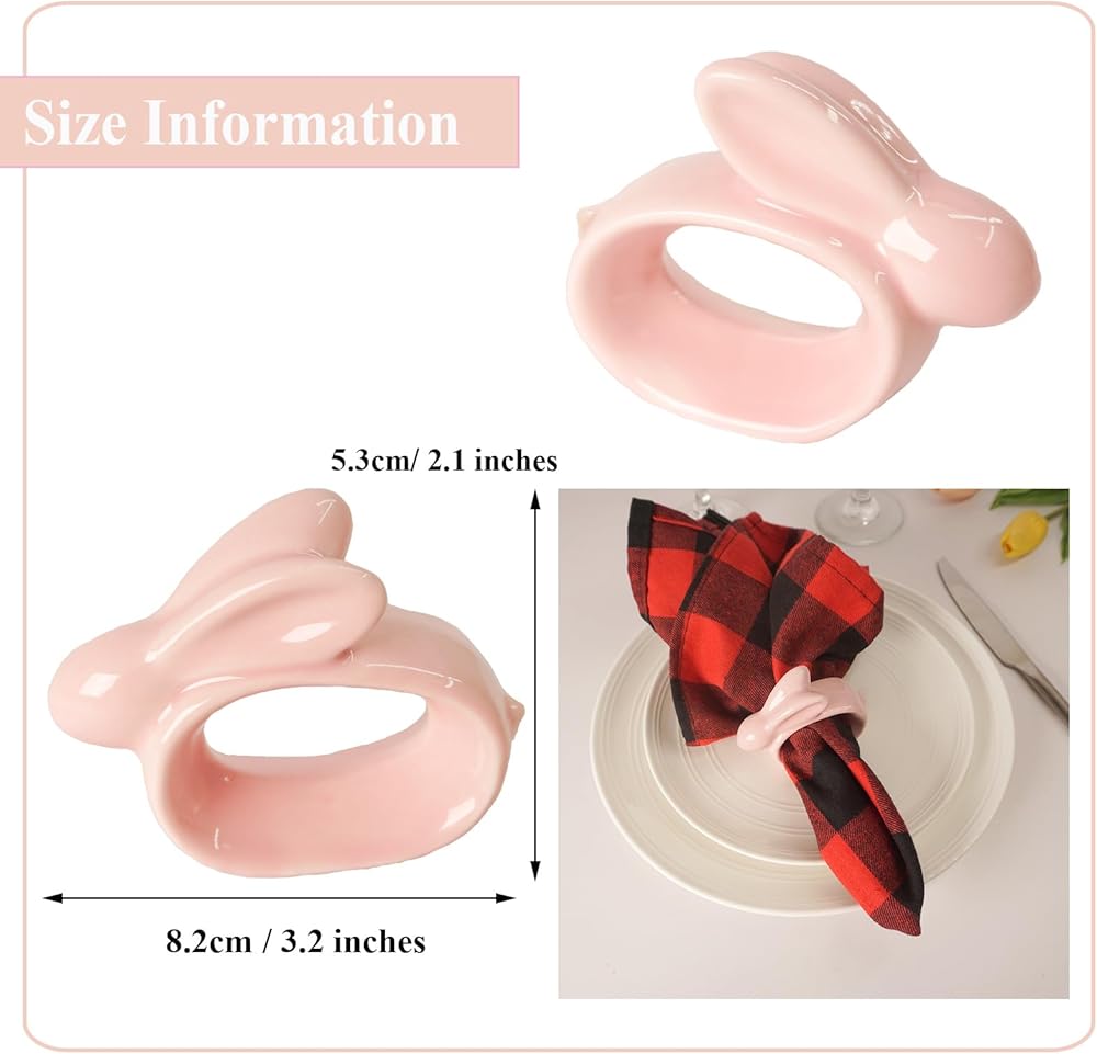 تصميم فريد ورائع: حلقات مناديل الأرنب مصنوعة من البورسلين. يعتمد على أحدث التقنيات المصنوعة يدويًا، مع صنعة متقنة، سطح السيراميك على شكل حلقة منديل الأرنب الوردي مغمور بريق ساحر، مما يعطي تجربة بصرية أنيقة ورائعة ومتطورة. سوف تحب عائلتك وأصدقاؤك حلقات المناديل هذه