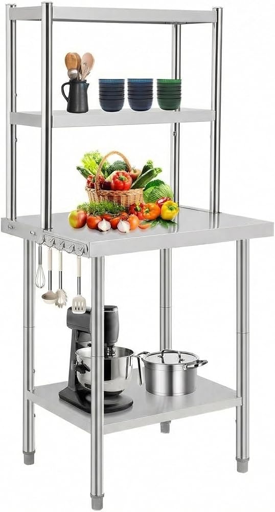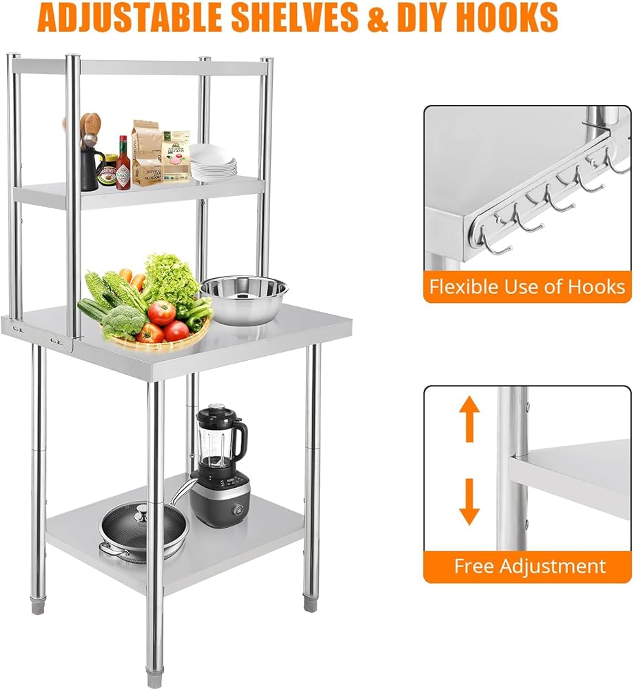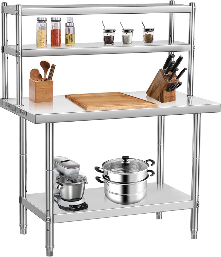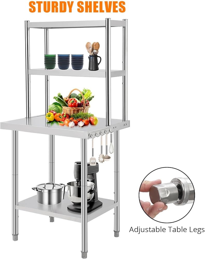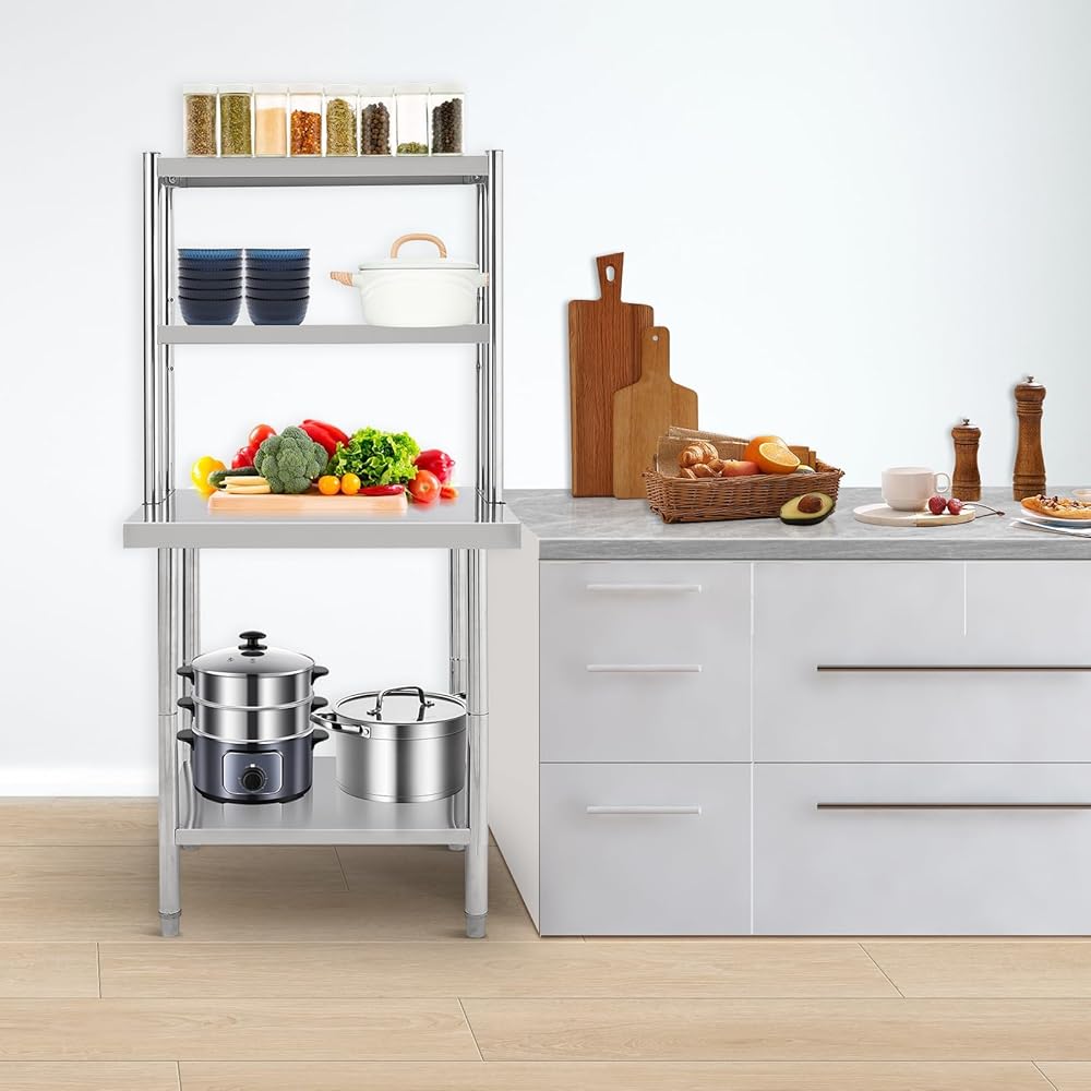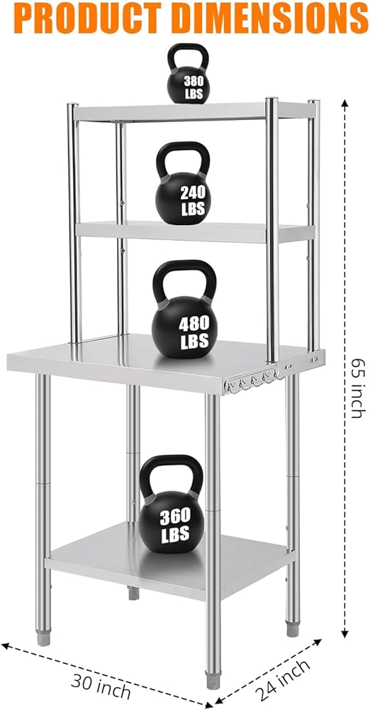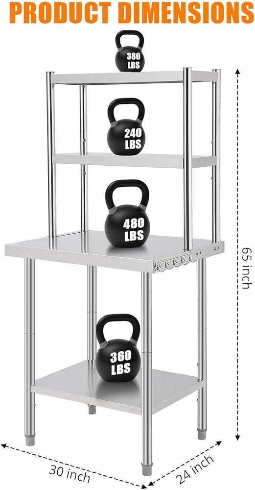 Generous Load Capacity: Engineered to support heavy equipment, this stainless steel work table can hold up to 1460 lbs (depending on size), providing a steady foundation for prep work, storage, and daily tasks.