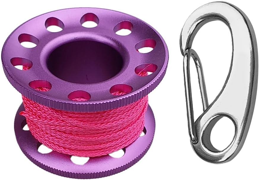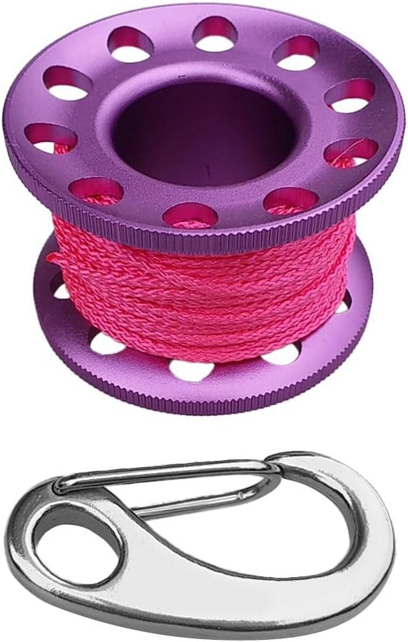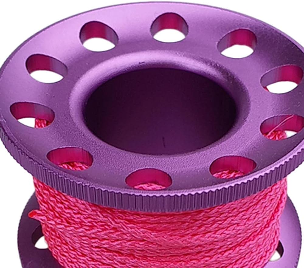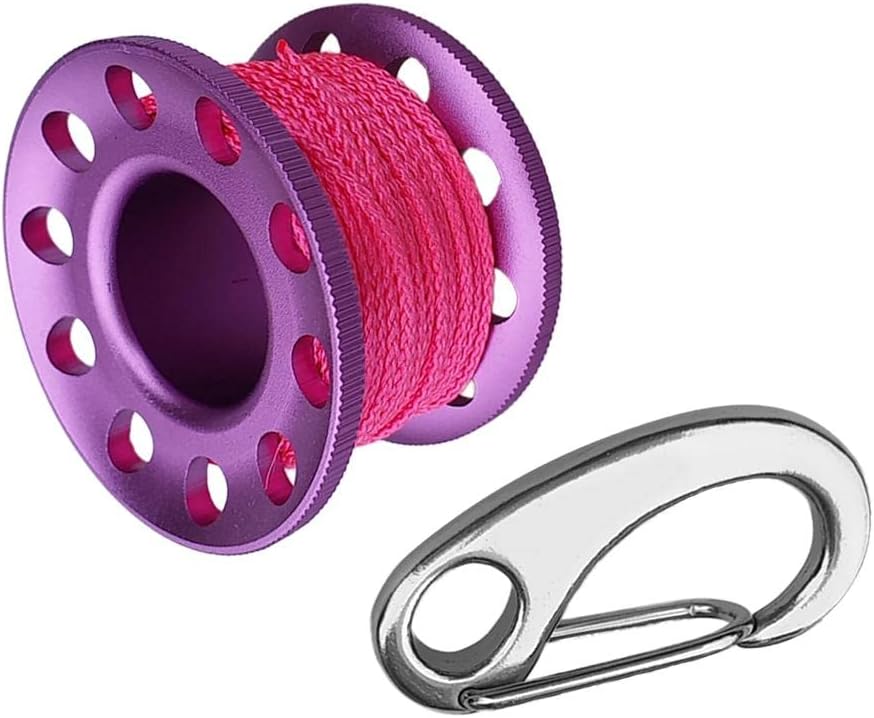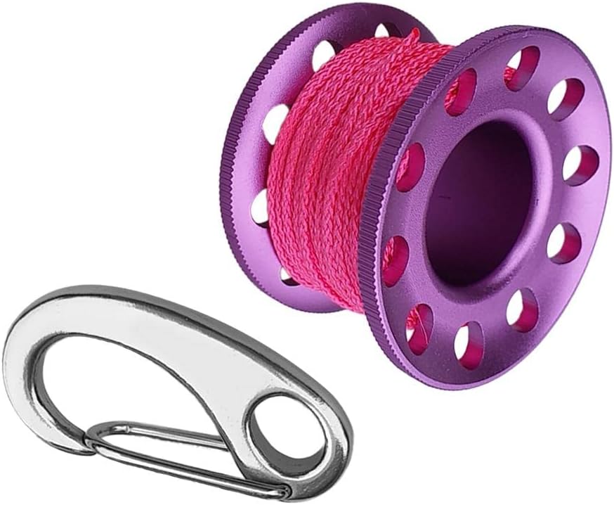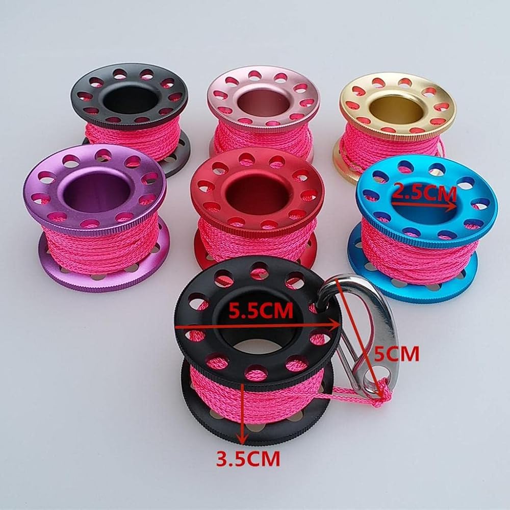 - Scuba diving aluminum alloy finger spool reel with 10m/393.70inch high visibility colorful wear-resistant line, compact, lightweight, durable and portable.