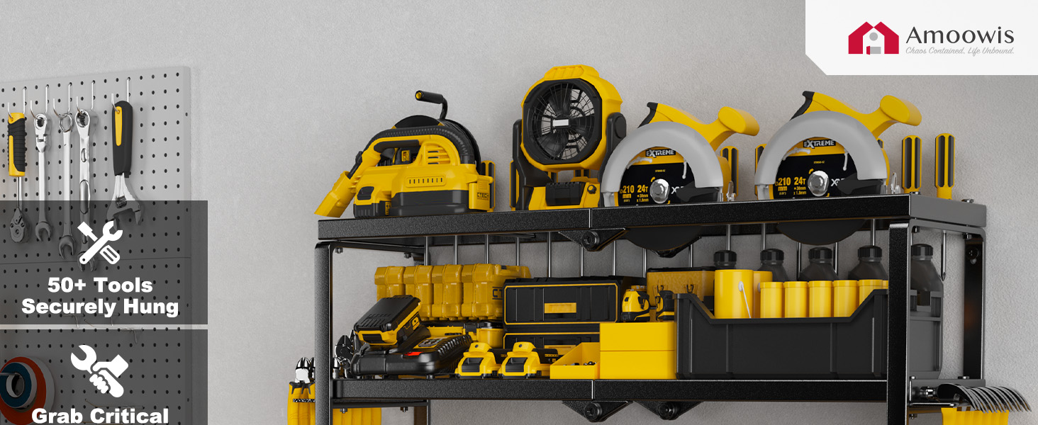 قم بتخزين أكثر من 50 نوعًا من الأدوات: رف التخزين متعدد الاستخدامات هذا هو الحل الشامل لمنظمات الأدوات والتخزين، والعمل بشكل رائع في الداخل أو الخارج أو بجانب لوحات التعليق. فهو يخزن بشكل أنيق محطات الشحن والبطاريات وصناديق الأدوات ولقم الثقب والمطارق وجميع أدوات المرآب الأساسية الخاصة بك، مما يضع حدًا لمتاعب عدم التنظيم.