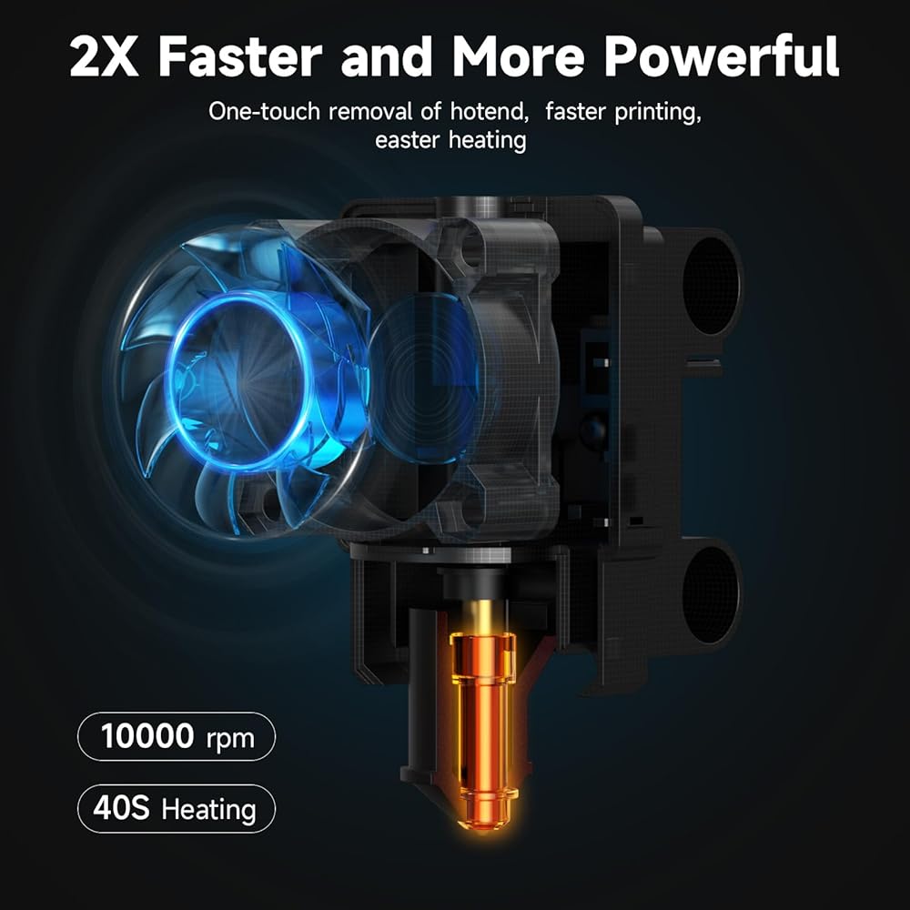 • سرعة أسرع: طابعة ثلاثية الأبعاد عالية السرعة تمت ترقيتها حديثًا، وسرعة طباعة 250 مم/ثانية توفر وقت الطباعة بشكل كبير، ويمكنها إكمال تصميم الطباعة بسرعة. يمكن للمروحة عالية الطاقة 10,000 دورة في الدقيقة تسريع تبديد الحرارة، بحيث تكون طباعة النموذج أكثر استقرارًا والتفاصيل أكثر كمالا.