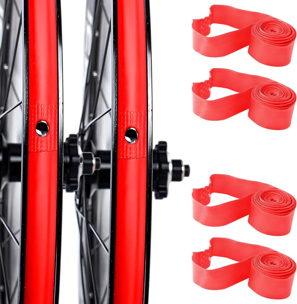 • تشمل العبوة: سوف تحصل على 4 قطع من شريط حافة بطانة إطار الدراجة. الحجم: شريط حافة مقاس 24 بوصة باللون الأحمر، وعرض 18 مم ويناسب أي إطار دراجة مقاس 24 بوصة. لتثبيت الشريط بدون أنابيب، قم بتمديده على العجلات، ثم يتم تثبيته في مكانه أسفل الحافة.