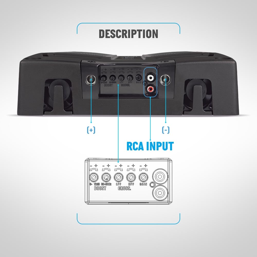 It has a frequency response of 22Hz to 1000Hz. Due to this, the ELECTRA will only play Subwoofers, Bass and Woofers. The variable BASS BOOST feature 30 - 80hz by up to 12dB is a differentiator, further reinforcing the bass of your system. Designed on a bold 100% aluminum chassis, it works with a power of 10000 WRMS with 1 input channel for connection and an impedance of 1 Ohm. It has very low harmonic distortion and Clipping indicator, forced ventilation and short circuit protection. ||