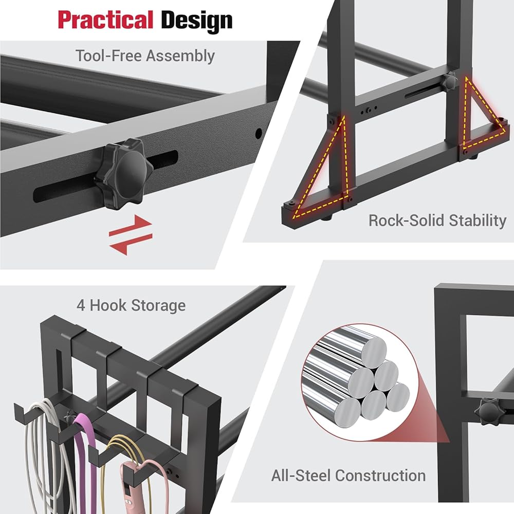 Extra Storage Hooks: Comes with 8 side hooks (4 per side), each holds up to 11 lbs. Perfect for resistance bands, jump ropes, or towels.