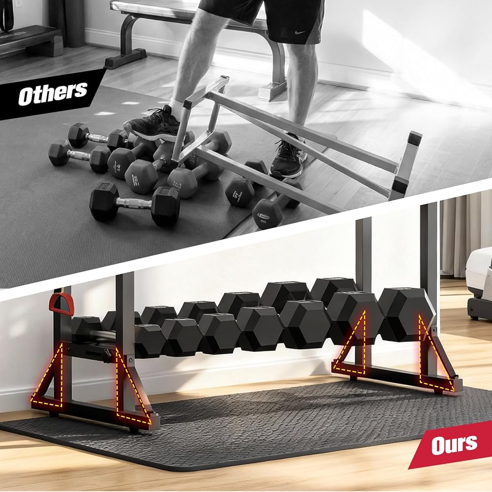 3-Tier Adjustable Dumbbell Rack Stand - Heavy-Duty Carbon Steel Weight Storage Organizer for Home Gym, Easy Assembly