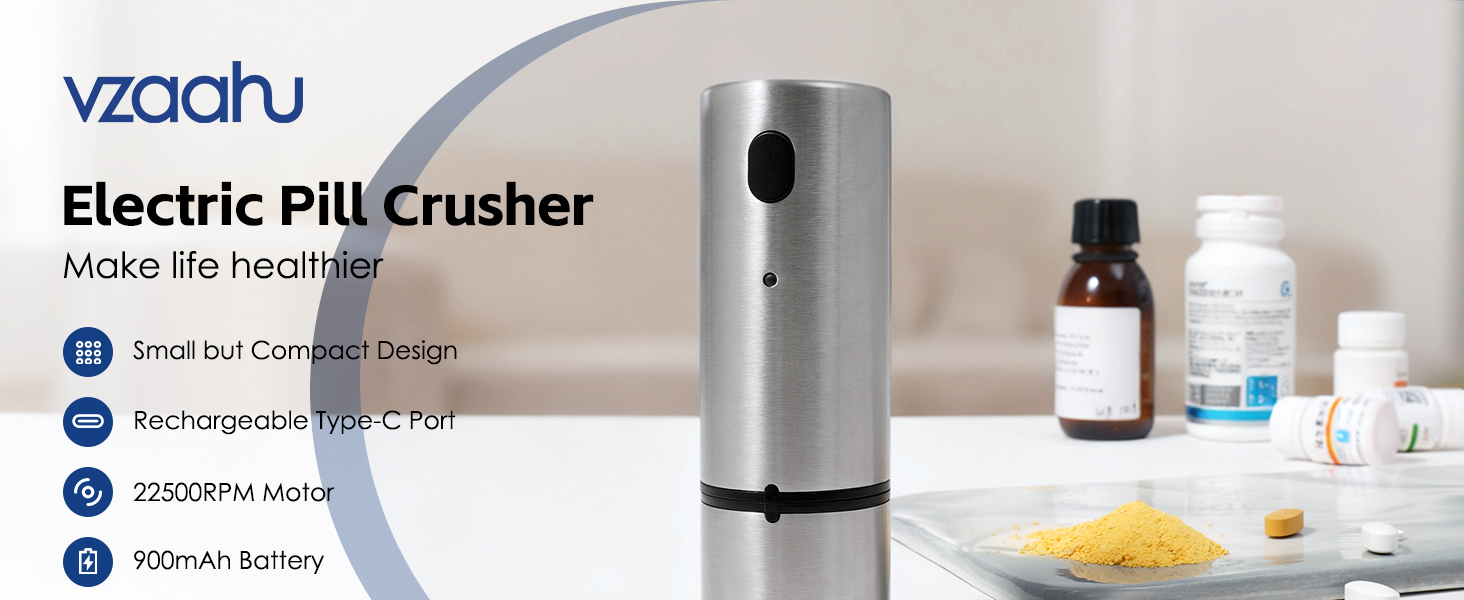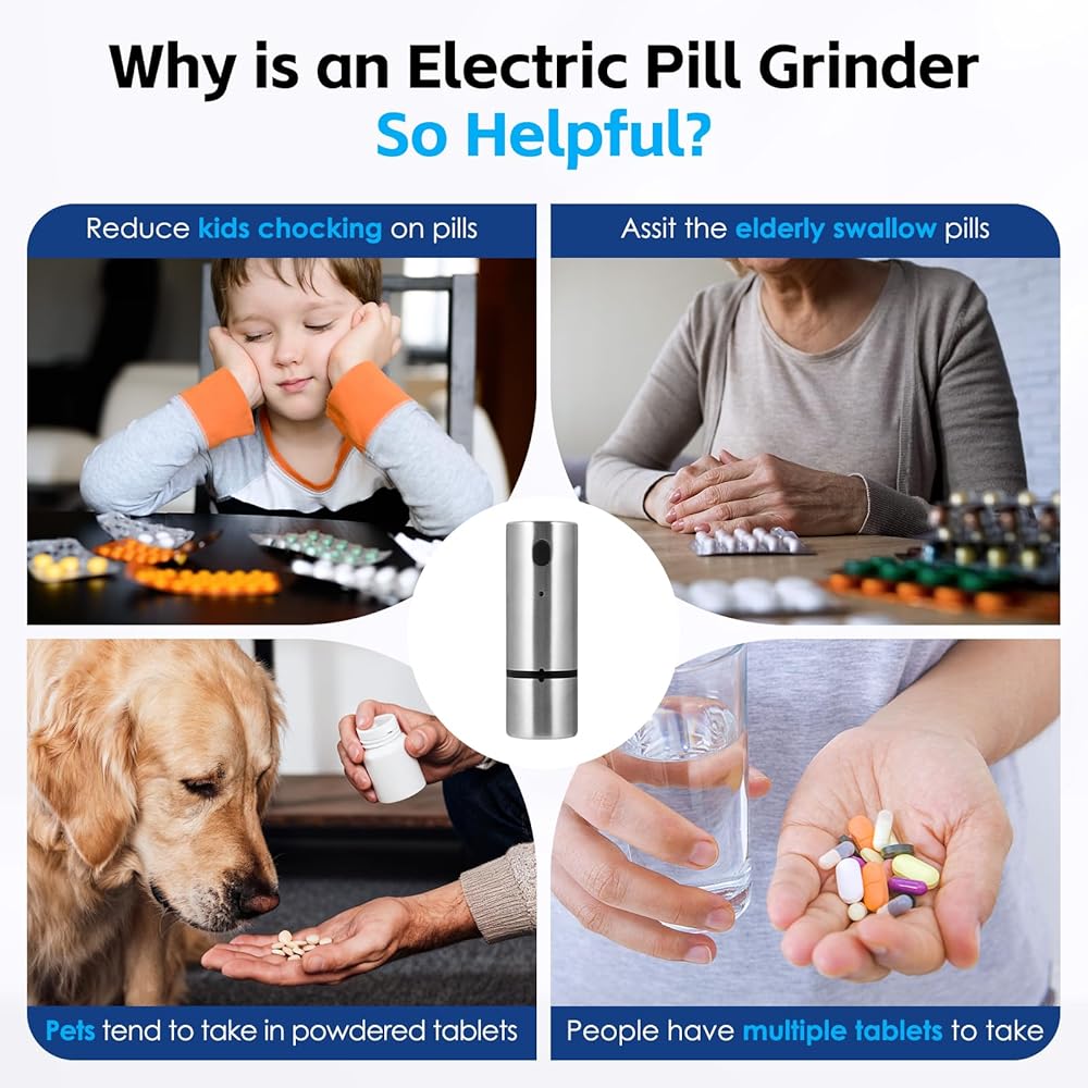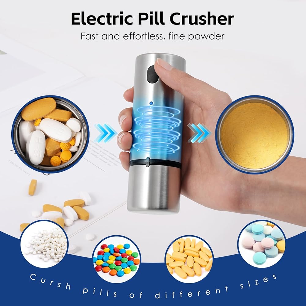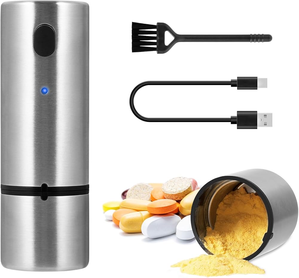 كسارة حبوب الدواء الكهربائية Vzaahu مسحوق ناعم محمول صغير من الفولاذ المقاوم للصدأ ومطحنة أقراص فيتامين لكبار السن