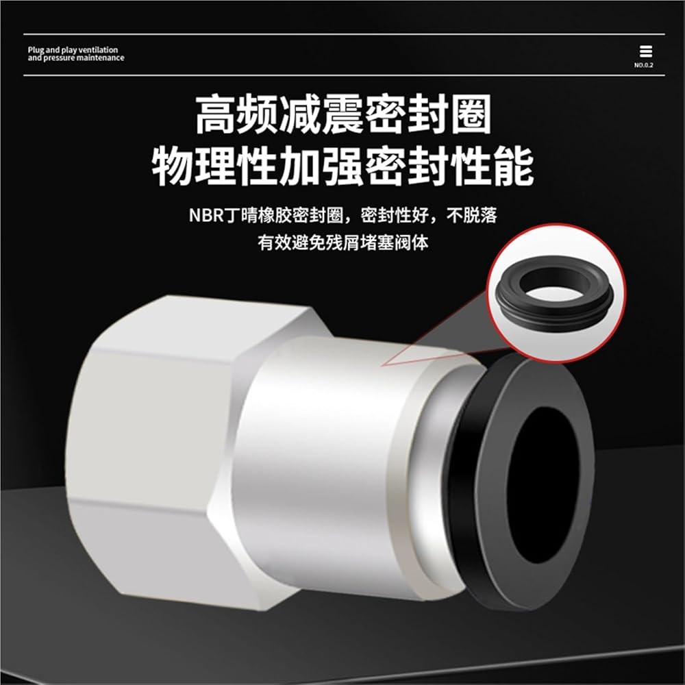 Pneumatic Tracheal Quick Connector PCF6-01/8-02/10-03 Insert Internal Thread Straight Through Black And White 1Pcs