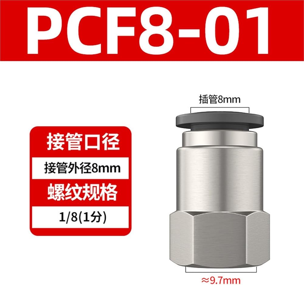 هوائي القصبة الهوائية موصل سريع PCF6-01/8-02/10-03 إدراج الخيط الداخلي مباشرة من خلال الأسود والأبيض 1 قطعة(黑色PCF8-01(高端))