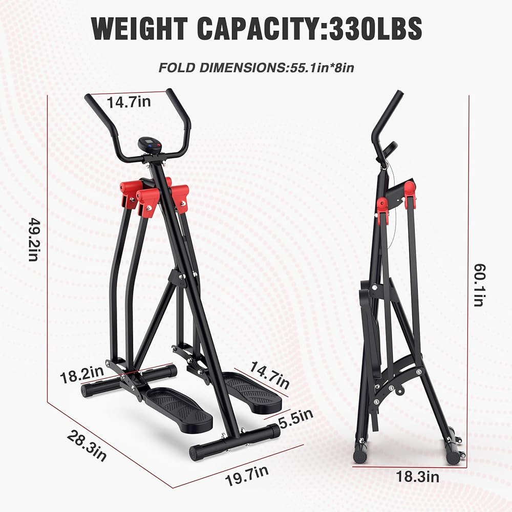 FOLDABLE DESIGN & SPACE SAVING:This foldable air walk trainer allows you to storage it in your cabinet or storeroom so that it can help you save much space when you don't use it.