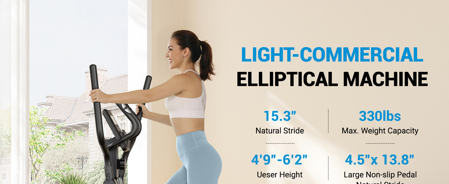 【Heavy-Duty Stability for All Users】This THERUN Elliptical Exercise Machine is engineered with a reinforced steel frame and triangular alloy foot tube, the THERUN elliptical exercise machine supports up to 330 lbs while delivering rock-solid stability. Independent foot tube stabilizers and oversized anti-slip pedals ensure secure workouts for users up to 6'4", combining safety with professional-grade durability. The natural 15.3" stride mimics real-world motion for joint-friendly cardio sessions
