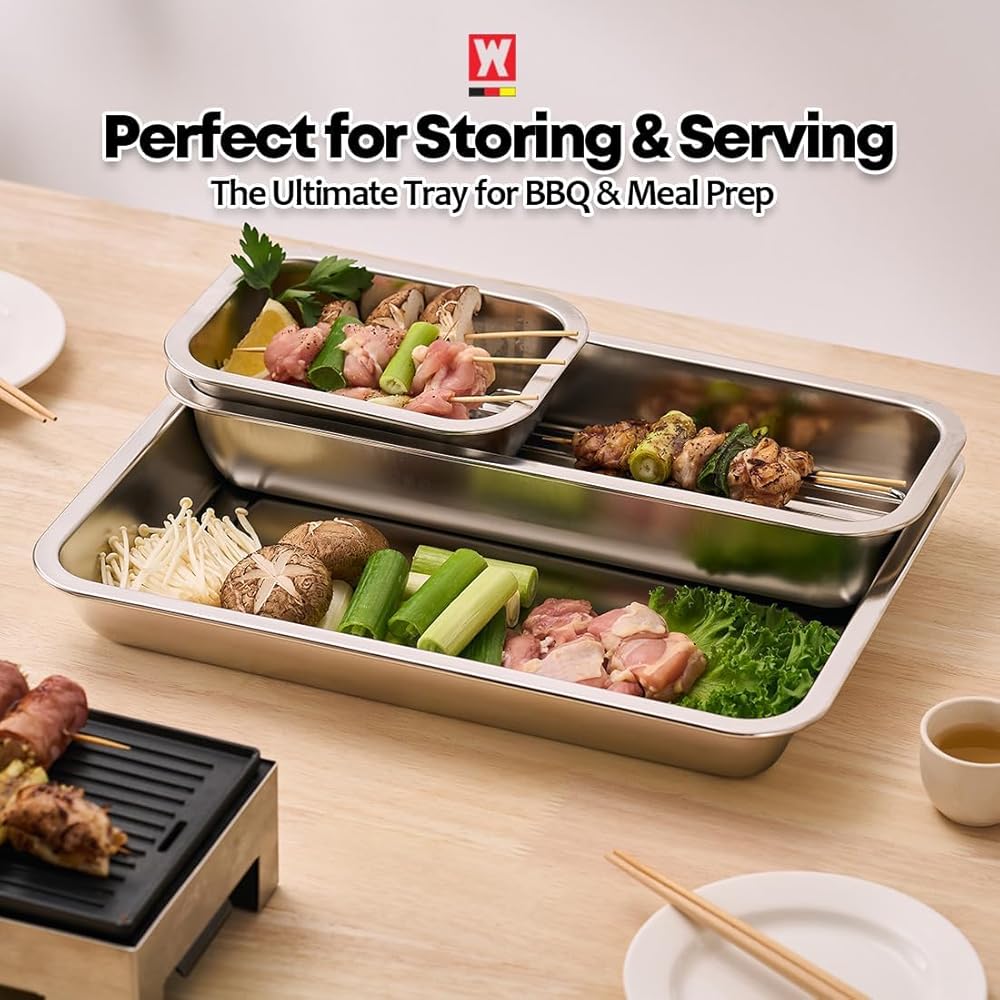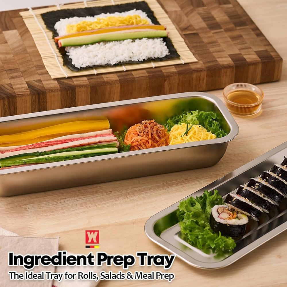• PERFECT FOR PROFESSIONAL & HOME KITCHENS: Designed for chefs and everyday cooks alike. Use it as a restaurant-style prep pan, buffet serving tray, yakitori prep station, kimbap ingredient tray, or stainless utensil organizer. Durable enough for heavy-duty daily use.