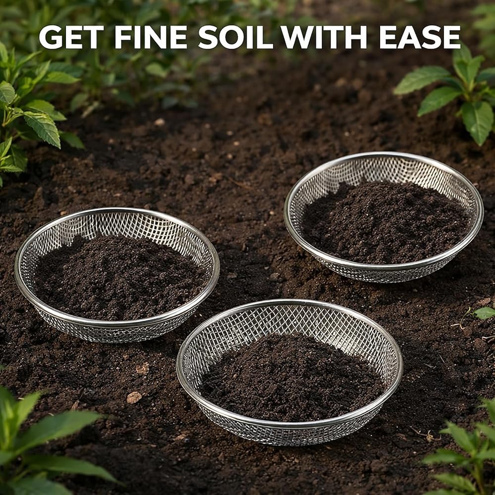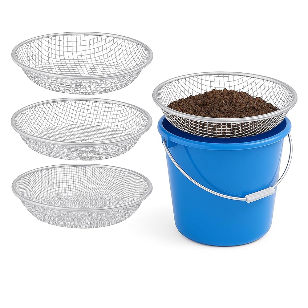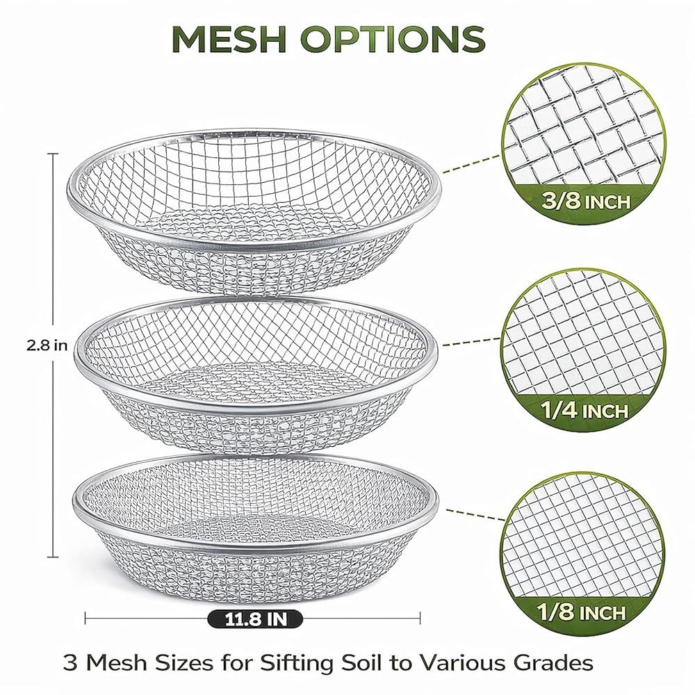 3 Mesh Sizes for Fast, Clean Separation Includes 3mm (1/8") / 6mm (1/4") / 10mm (3/8") screens to easily sift soil, compost, worm castings, frass, sawdust, sand, small rocks and gravel—choose the right size for the job and get smoother, more consistent results.