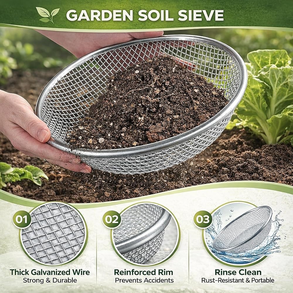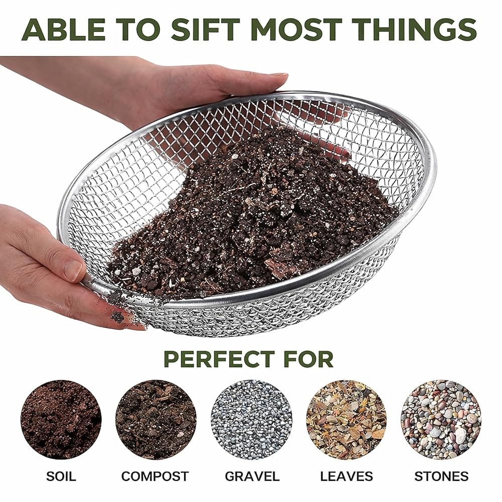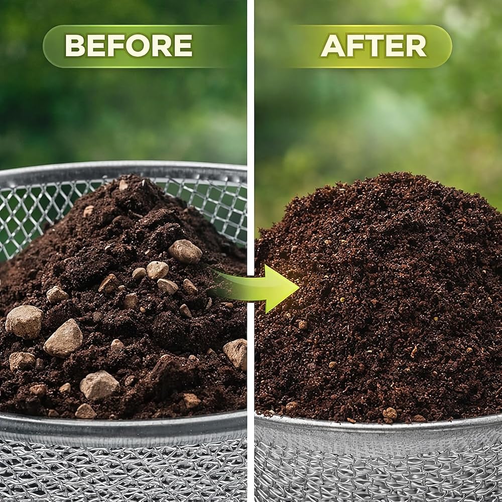 Multi-Purpose Sifting Tool for Garden & Compost: Ideal for preparing garden soil, screening compost, filtering worm castings, cleaning rocks from dirt, leveling topsoil, and more—an essential tool for gardening, composting, and landscaping.
