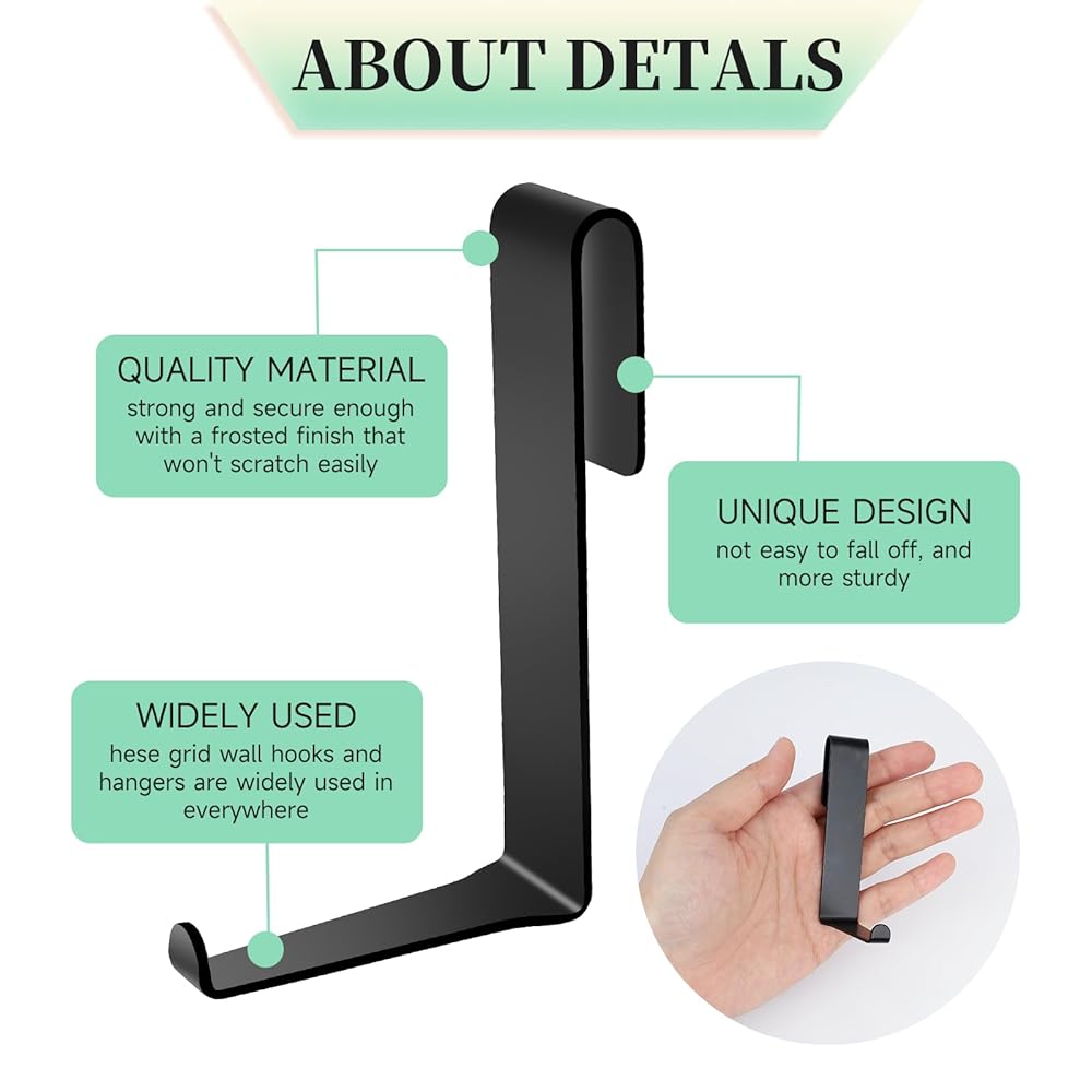 PRACTICAL DESIGN: Outdoor hooks for hanging size: 3.26inch length, 1.89 inch wide, maximum accepts wire and wall rails up to 0.23inch thick. The gridwall hooks heavy duty small opening at the top works well for grid panels or wall rails, while the large opening at the bottom is perfect for hanging kitchen items or small furniture items