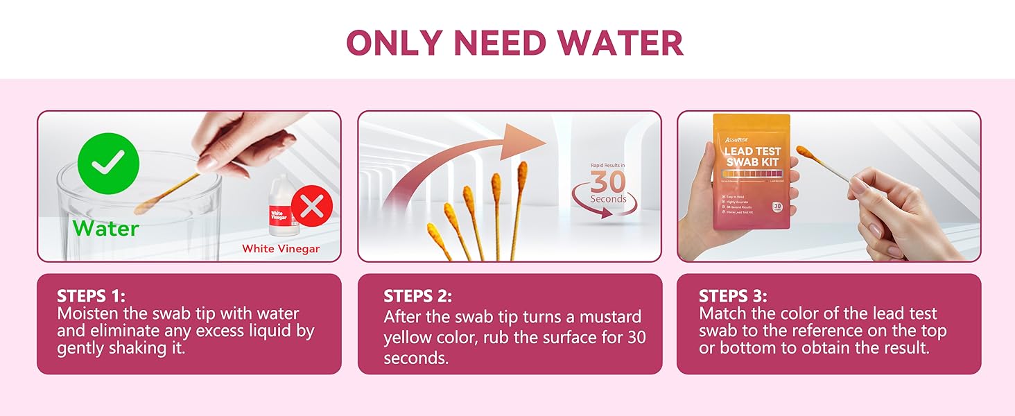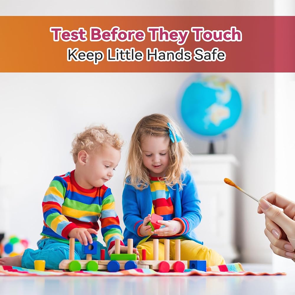 • السرعة في المنزل: تم تصميم مسحاتنا للكشف عن الرصاص بشكل موثوق، وتوفر نتائج دقيقة لتغيير اللون في 30 ثانية - مقارنة بالاختبارات الاحترافية، ولكن بدون الانتظار ورسوم المختبر باهظة الثمن. مثالية لإجراء فحوصات سريعة وفحوصات منتظمة لسلامة المنزل.