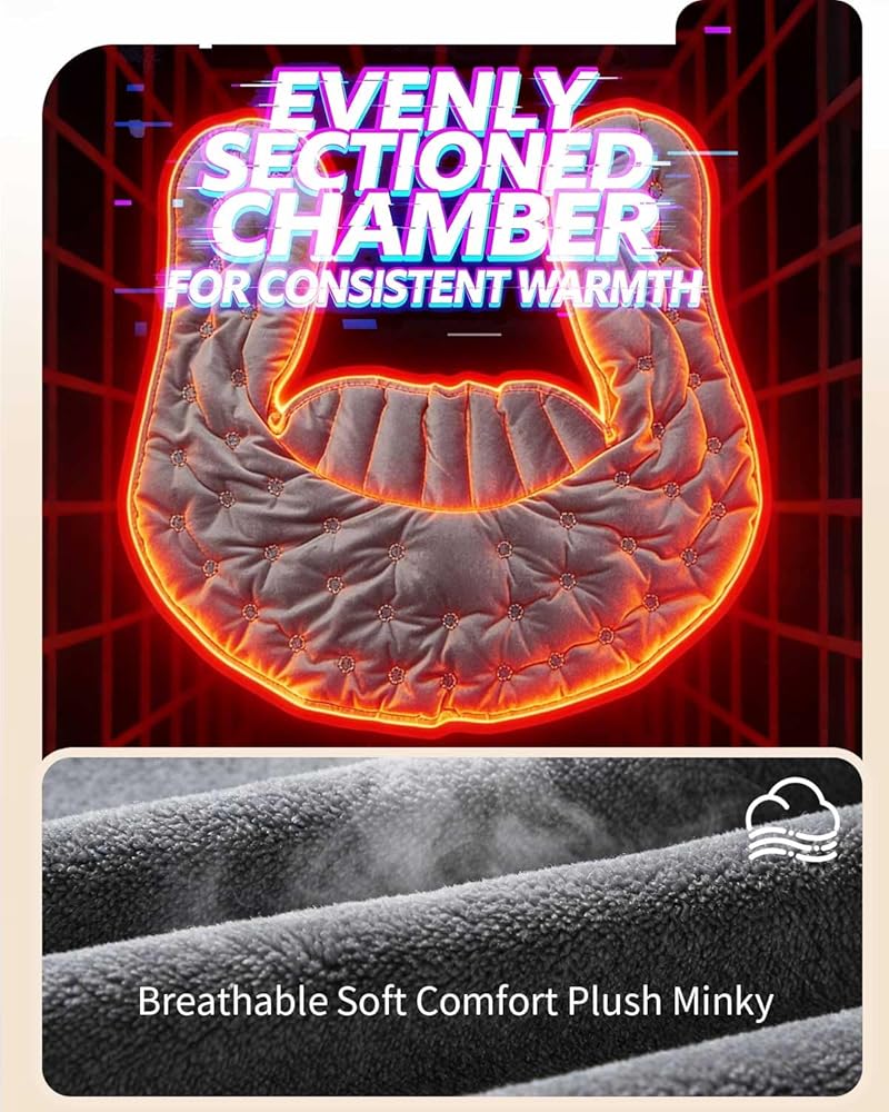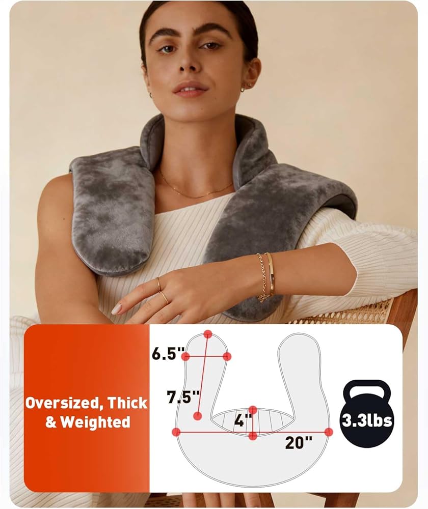 【تصميم كبير للغاية ووزن 3.3 رطل】: وسادة التسخين الموزونة للرقبة والكتفين، مناسبة أيضًا كوسادة تدفئة للظهر، وتتميز بطول كتف طويل جدًا 20 قدمًا ووزن 3.3 رطل، وتتناسب بإحكام حول جسمك دون الانزلاق. تصميم ذو ياقة عالية يغطي رقبتك وأكتافك وظهرك بالتساوي، مما يوفر حرارة رطبة عميقة إلى المناطق المستهدفة من أجل تخفيف سريع من توتر العضلات وألمها.