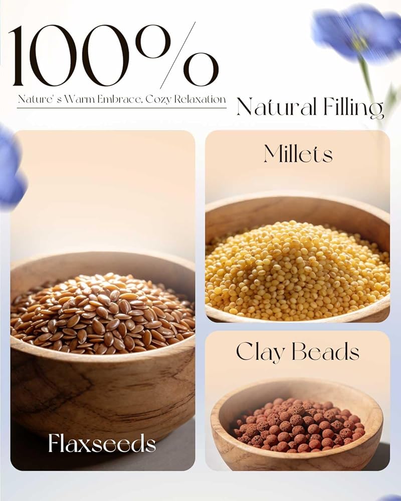 【حشوة طبيعية】مملوءة ببذور الكتان والدخن والطين عالية الجودة، وتحتفظ وسادة التسخين القابلة للاستخدام في الميكروويف للرقبة والكتفين بالحرارة الرطبة لفترة أطول من وسادات التسخين العادية. يوفر تخفيفًا لطيفًا وطويل الأمد للآلام اليومية، مما يجعله وسادة تسخين مثالية يمكن وضعها في الميكروويف لعلاج آلام الرقبة وعدم الراحة في الكتف.