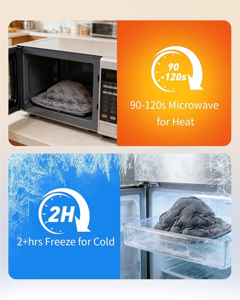 【غطاء قابل للإزالة والغسل والاستخدام الآمن】مجهزة بغطاء خارجي قابل للإزالة والغسل في الغسالة، وسادة التسخين القابلة للغسل في الميكروويف سهلة التنظيف وتحافظ على نظافتها للاستخدام طويل الأمد. الحافة المضادة للحرق تحمي بشرتك بشكل فعال؛ ما عليك سوى استخدام الميكروويف لمدة 90-120 ثانية للحصول على وسادة تدفئة رطبة دافئة للرقبة، أو تجميدها لمدة 2-3 ساعات كضغط بارد للتورم.