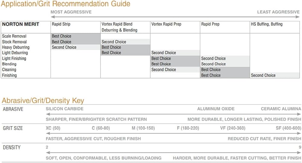 • Coarse grit for moderate material removal and initial blending of welds on stainless, aluminum, carbon steels, and titanium