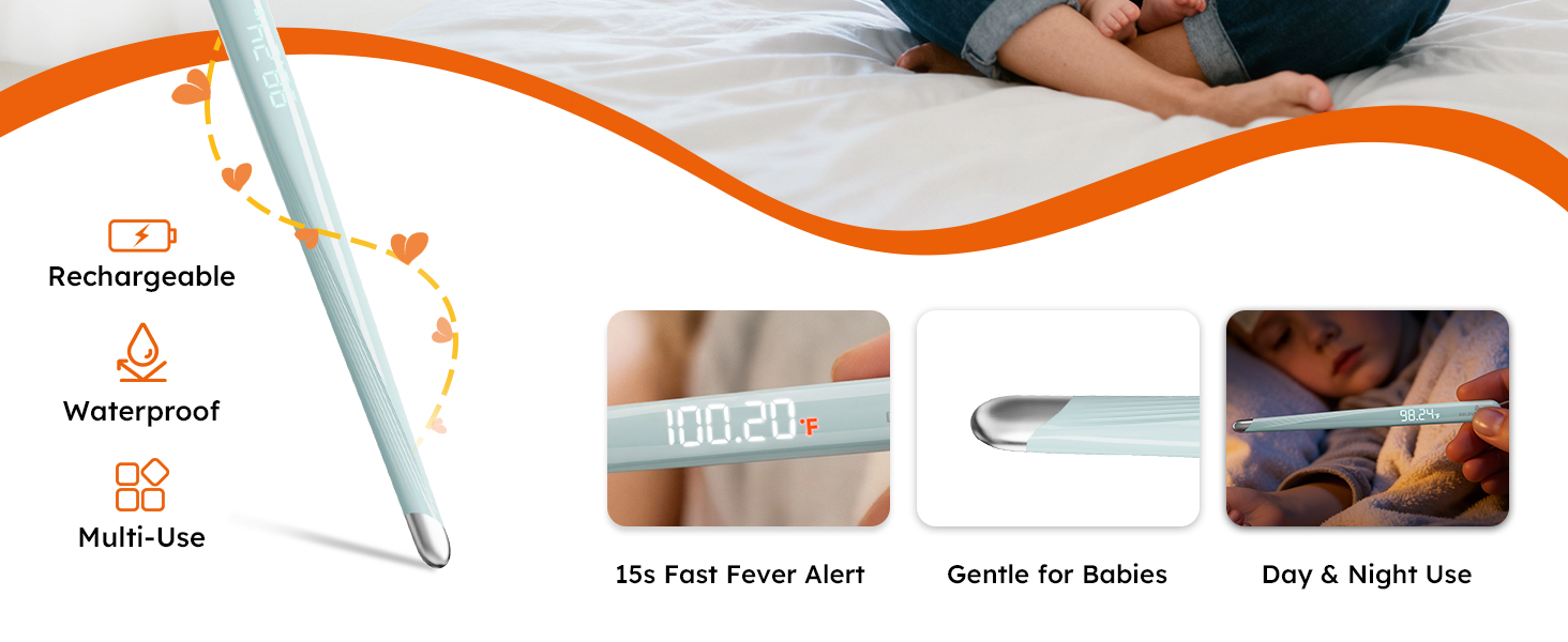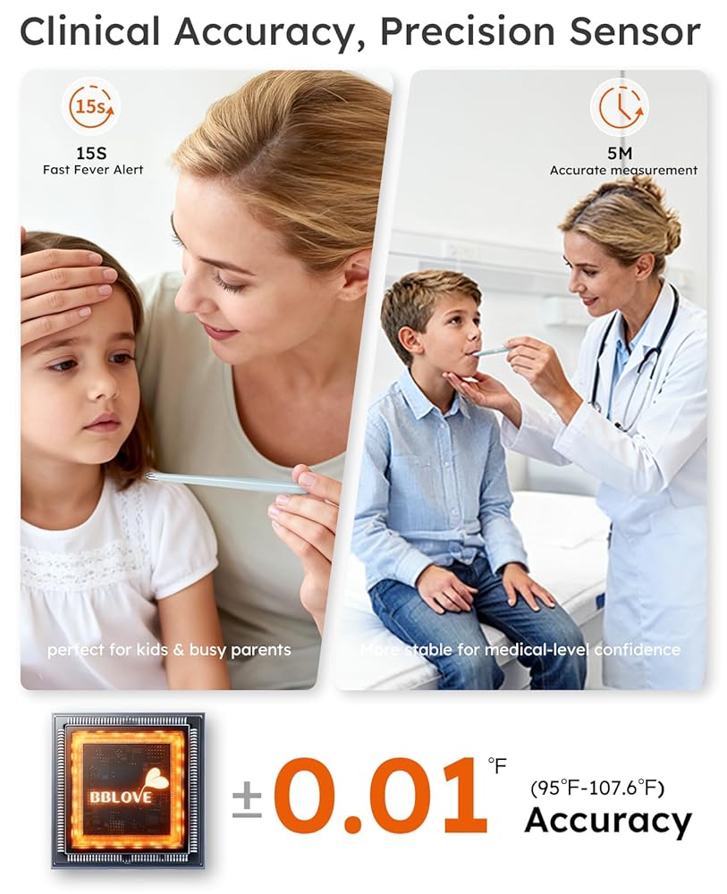 فحص سريع للحمى وقياس دقيق: فحص سريع للحمى خلال 15 ثانية فقط لفحص سريع لدرجة الحرارة. للحصول على نتائج أكثر دقة، يوفر القياس تحت الإبط لمدة 5 دقائق دقة طبية، مما يجعل مقياس الحرارة الرقمي هذا موثوقًا به للأطفال الرضع والأطفال والبالغين في المنزل.