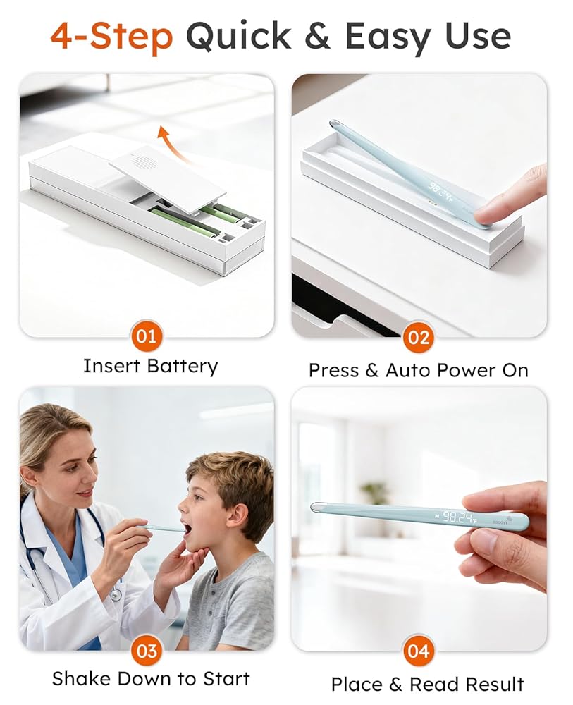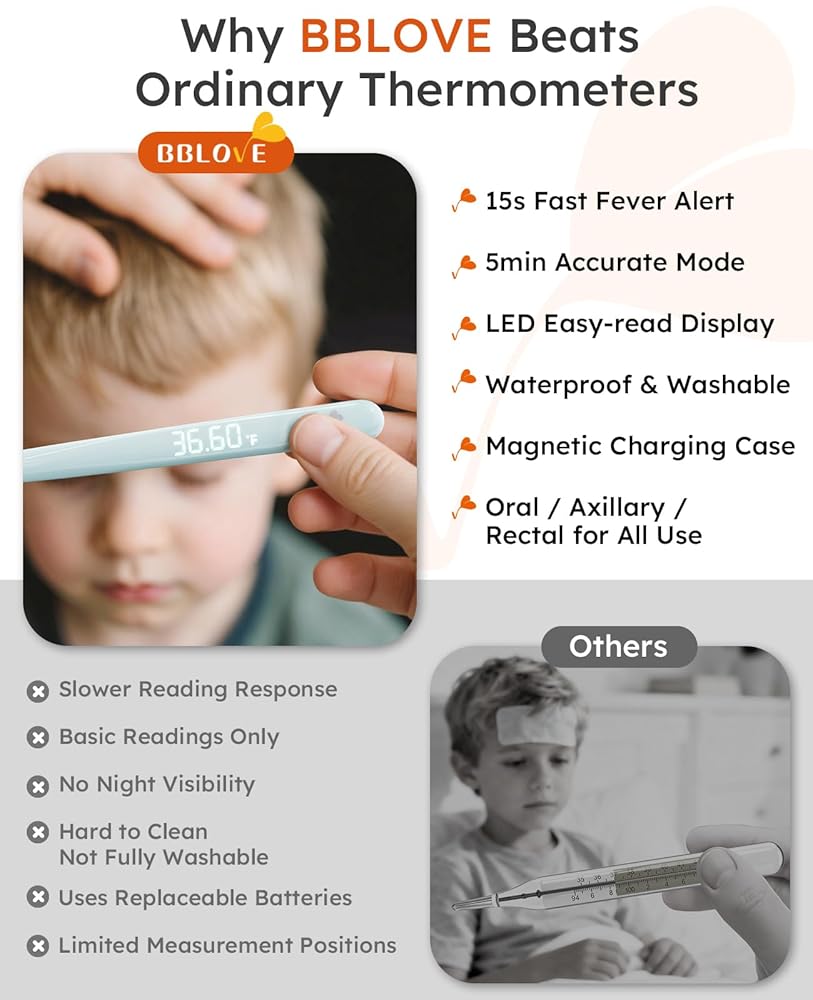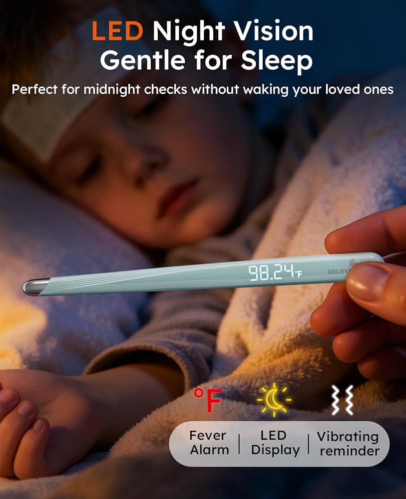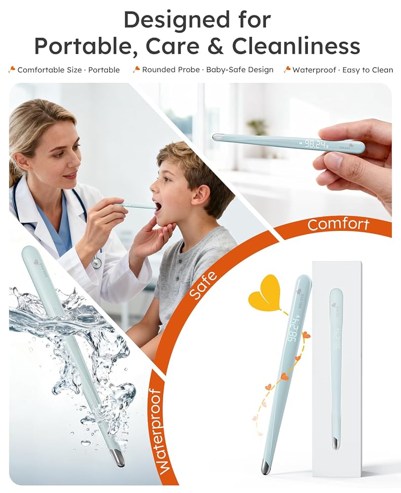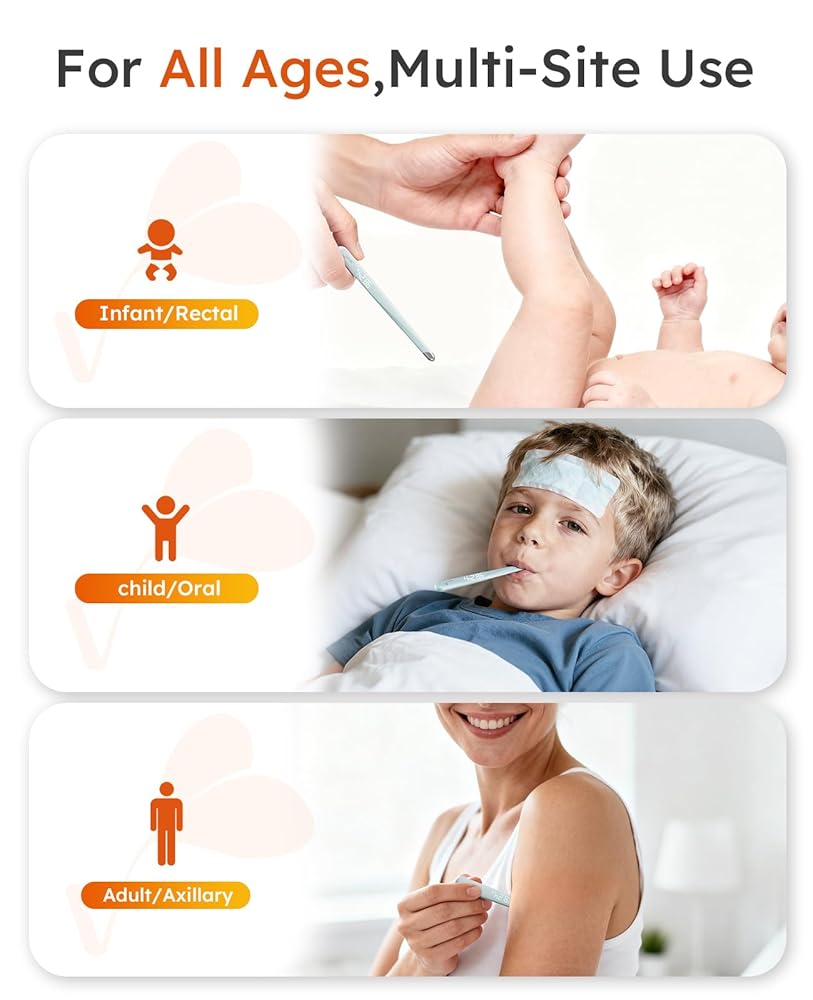 مناسب لجميع أفراد الأسرة: مصمم للأطفال والرضع والبالغين، يدعم مقياس الحرارة متعدد الاستخدامات هذا قياس درجة حرارة الفم وتحت الإبط والمستقيم، مما يجعله ضروريًا صحيًا موثوقًا لكل منزل.