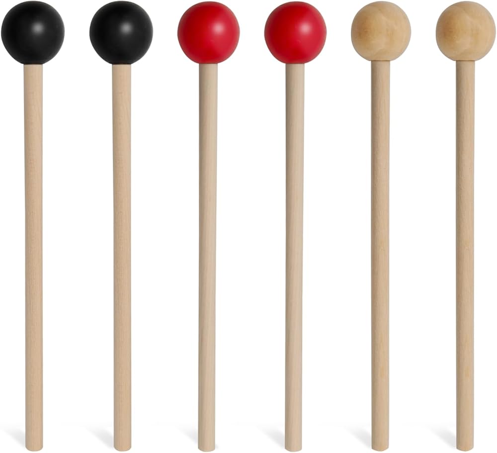 6-Pack Value (No More "Oops, I Lost One"): This set comes with 6 mallets (2 black, 2 red, 2 natural wood heads) – double the backup of typical 3-packs! Perfect for classroom activities, or just not panicking when one goes missing mid-practice. Compact enough to toss in any instrument bag.