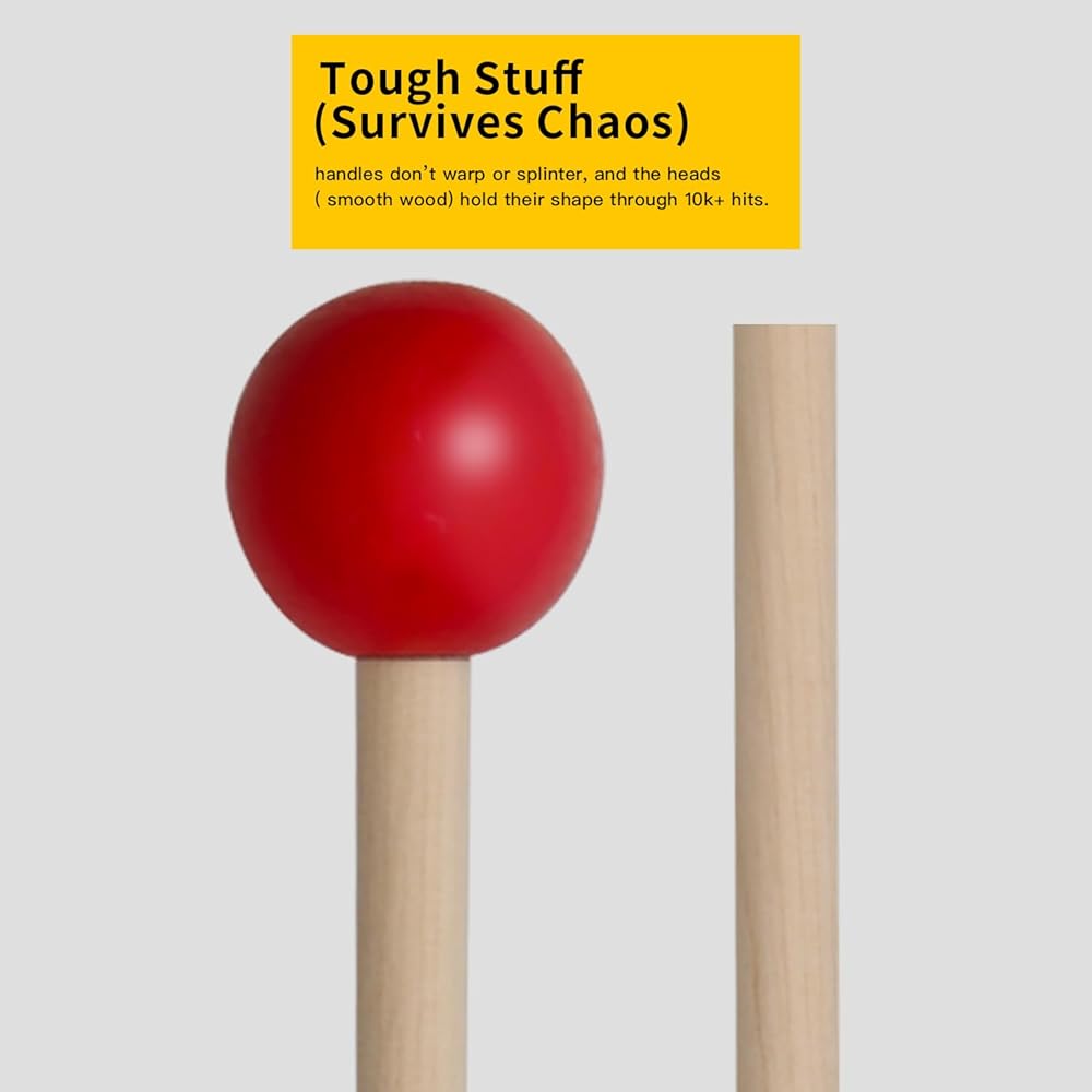 Color-Coded Win (No More Fumbling): Black/red/natural heads make it easy to grab the right mallet fast – perfect for teaching (assign colors to parts!) or keeping your rhythm tight in performances. No more squinting to tell which stick is which mid-song.