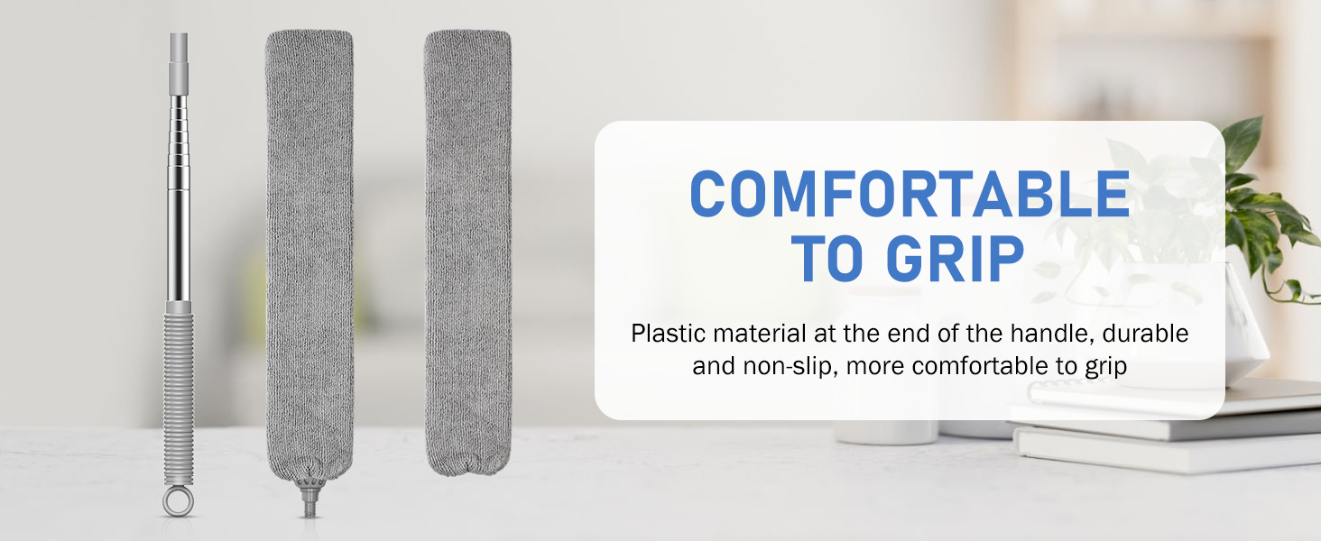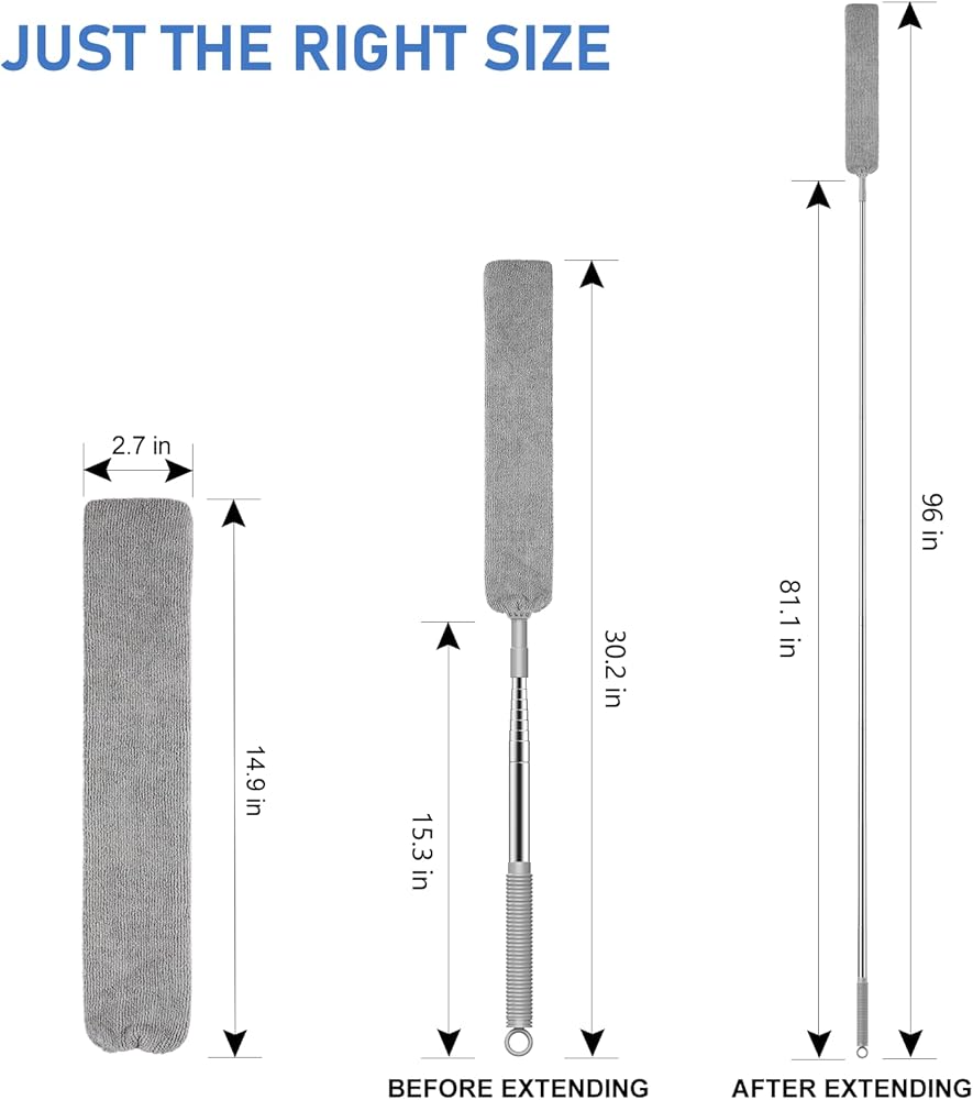 • منفضة فجوة قابلة للتمديد - يمكن تمديد منفضة الفجوة هذه إلى 81 بوصة. قم بتمديد المنفضة المسطحة إلى الطول الذي تحتاجه. بالنسبة للزوايا التي يصعب تنظيفها أو المساحات الضيقة، فإن أداة التنظيف المنزلية هذه تكفي فقط.