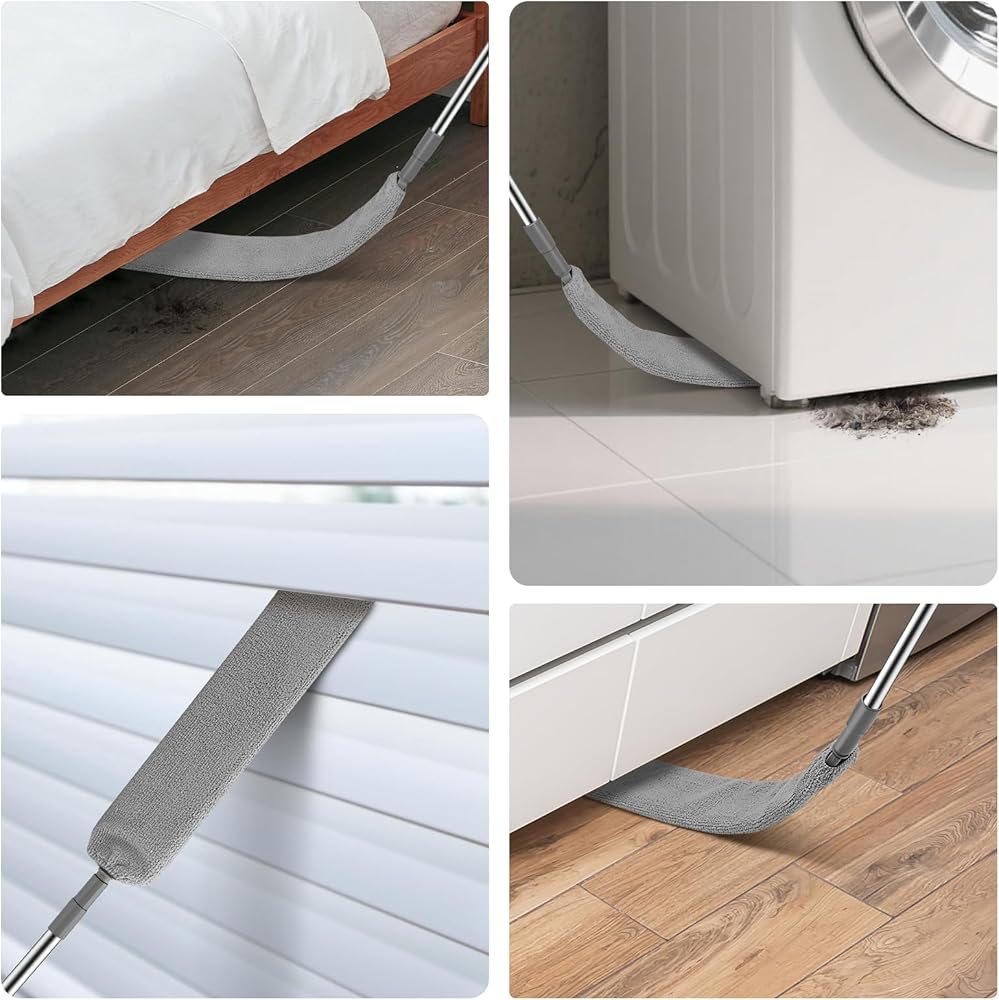 منفضة سيت سيل لتنظيف منفضة الفجوة القابلة للسحب مع عمود تمديد، أدوات تنظيف بمقبض طويل، منظف غبار مسطح مع قطعتين من قماش الألياف الدقيقة للثلاجة والأثاث تحت الأجهزة
